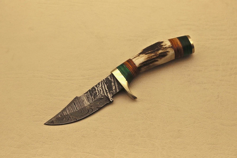 Custom Hand Forged High Damascus S teel Hunting knife, Stag Horn Charming Bolster Leather Sheath Blade of this knife has a nice file work and is made of 512 layers of 4340 stainless steel and 1075 high carbon steel and hardness 55-58 HRC . This robust Blank Blade is lab tested under intense conditions, the balance and shape of this Blank Blade ensures perfect grip. Overall Length: 6” Inches Design: Twist Pattern Layers: 512 Hand Forged Hardness: 55-58 HRC Care Instructions: Keep the blade dry after each cleaning. Warning: Take care when removing product from packaging. Keep fingers clear of blades. Store away from children. Complimentary gift messages *Gift wrapping service available for minimal additional fee We do sell wholesale, please contact us for special discounts on bulk orders. FEEDBACK POLICY: YOUR FEEDBACK IS VERY IMPORTANT FOR US, IF THEIR IS ANY KIND OF PROBLEM PLEASE GIVE US OPPORTUNITY TO SORT THE ISSUE