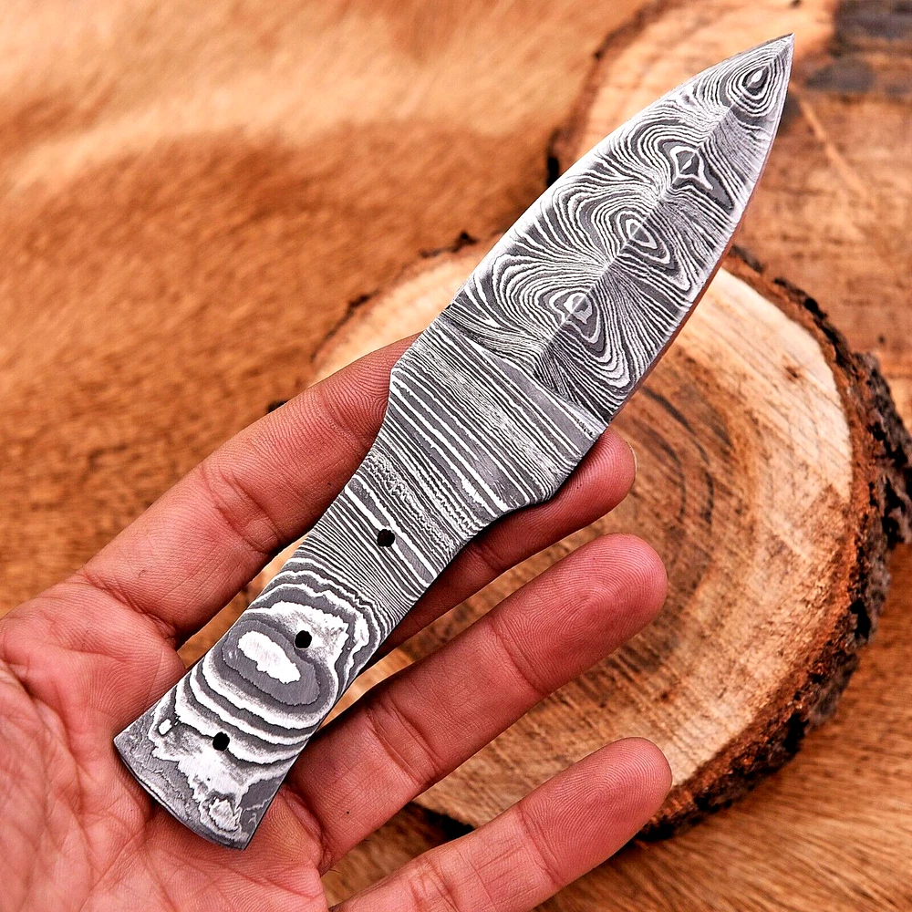 CUSTOM MADE THROWING BOOT KNIFE HAND FORGED DAMASCUS STEEL BLANK BLADE This superb design knife is hand forged. Blade of this knife has a nice file work and is made of 512 layers of 4340 stainless steel and 1075 high carbon steel and hardness 55-58 HRC . This robust knife is lab tested under intense conditions, the balance and shape of this knife ensures perfect grip. Overall Length: 6" Inches Blade Length: 3" Inches Handle Length: 3" Inches Damascus Design: Twist Pattern Layers: 512 Warning: Keep fingers clear of blades. Store away from children.