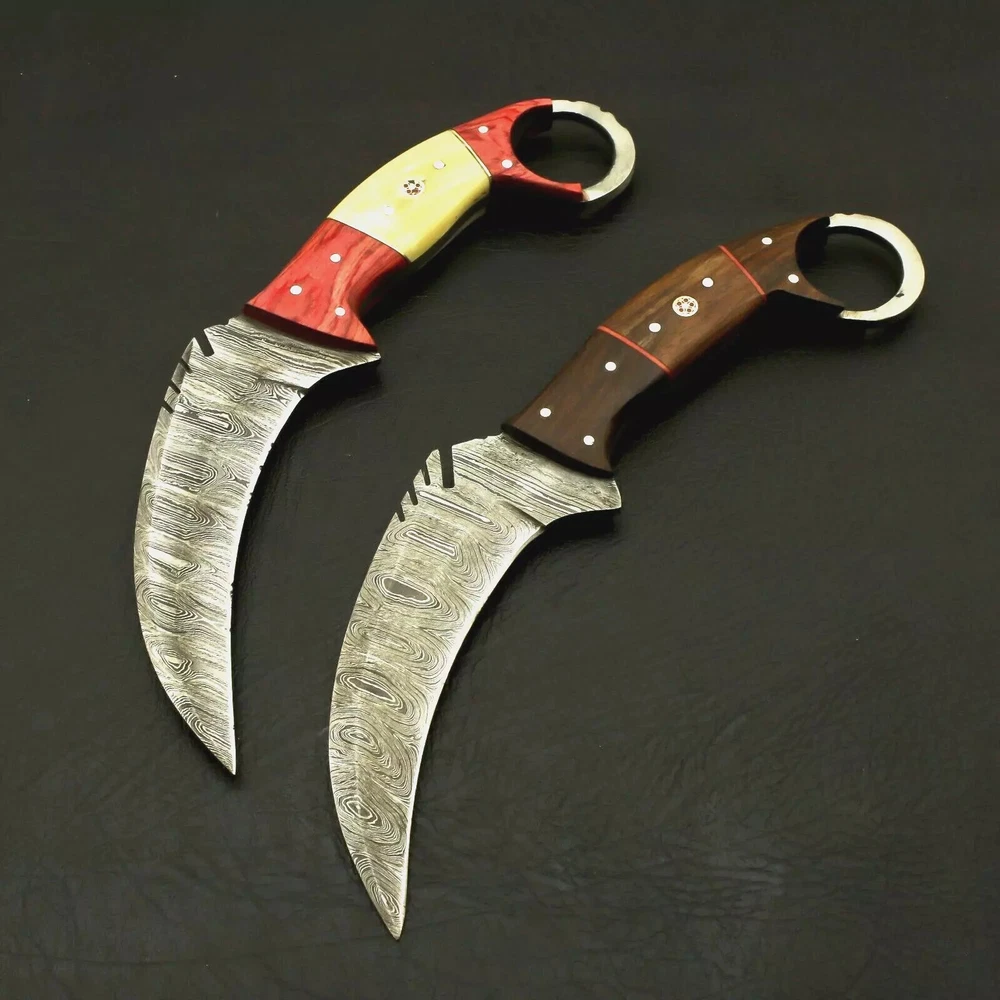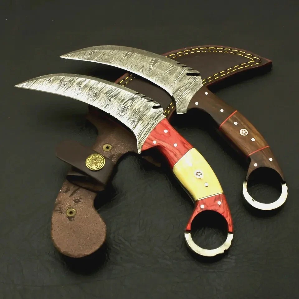 Custom Handmade Damascus Steel Karambits Bowie Survival Knife W/ Leather Sheath SPECIFICATIONS TOTAL LENGTH = 8.5 INCH BLADE LENGTH = 4.5 INCH BLADE MATERIAL = DAMASCUS STEEL HANDLE LENGTH = 4 INCH HANDLE MATERIAL = ROSEWOOD SHIPPING WE WILL SHIP THIS WITHIN 5 TO 7 DAYS AFTER RECEIVING PAYMENT WE USE TRACK ABLE COURIER SERVICE LIKE DHL UPS PAKISTAN POST REMOTE AREA CUSTOMER MUST PAY 45 $ EXTRA SHIPPING Returns are accepted within 14 days of delivery where item sold is unused & undamaged. Buyer will pay the return cost. Age Requirements & Verification: Strictly sold to 18+ ONLY. We may ask you to produce your ID to prove your age requirements. Please help us to keep our community safe.