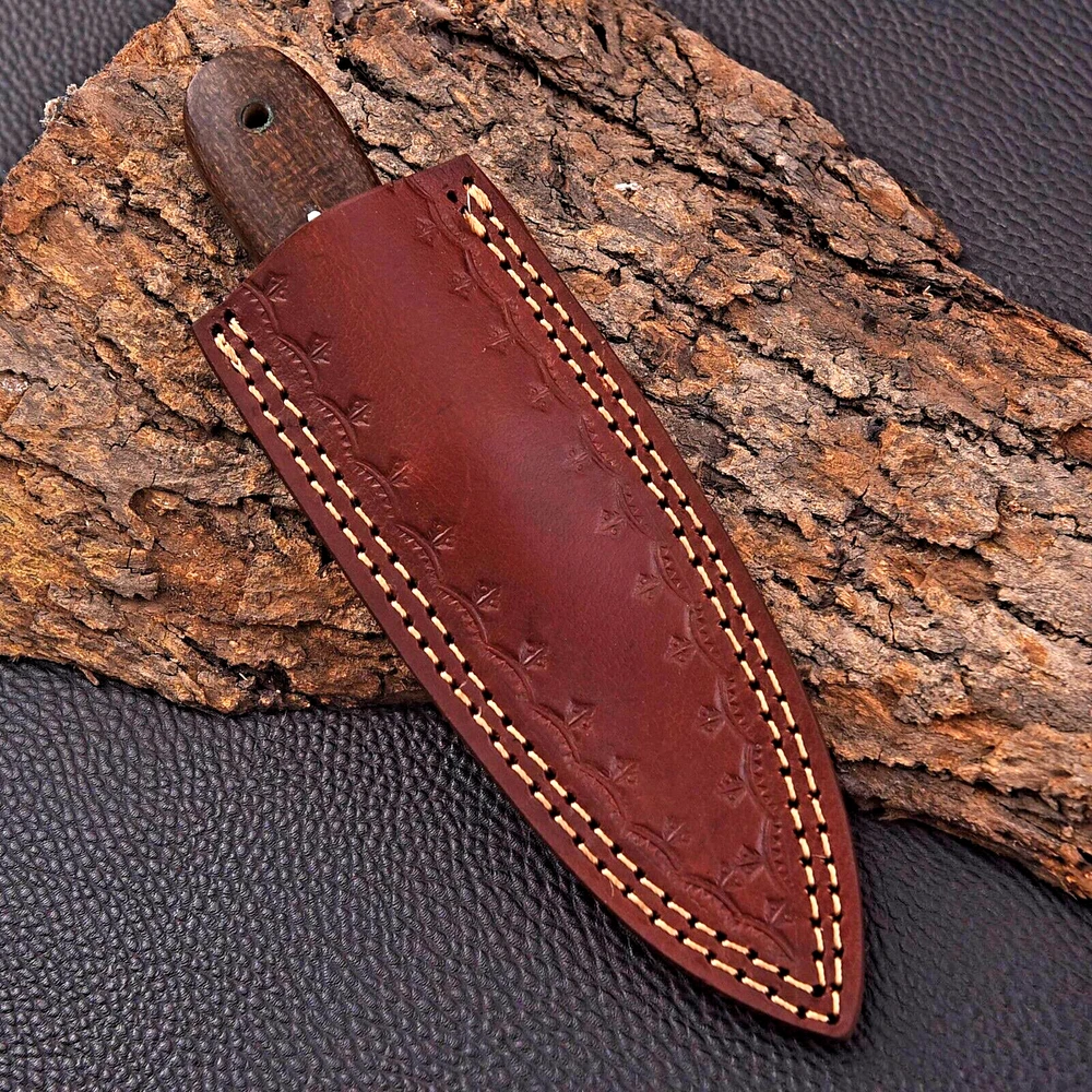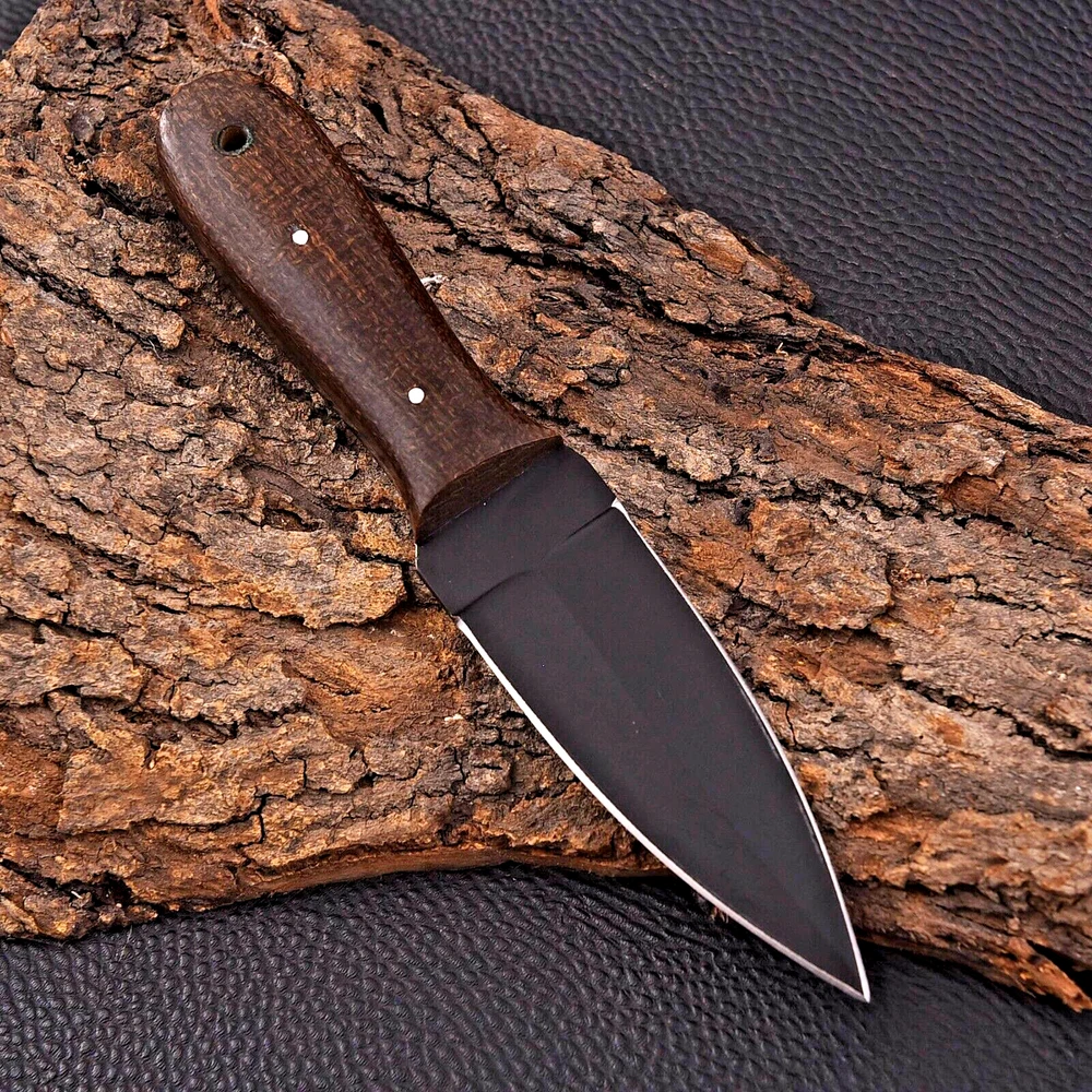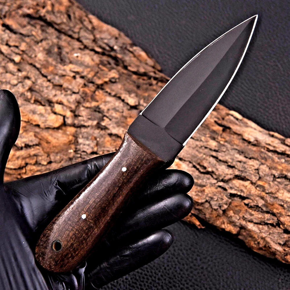 CUSTOM HANDMADE CARBON STEEL BOOT KNIFE DAGGER HUNTING KNIFE CAMPING SURVIVAL EDC KNIFE Micarta Handle This superb design knife is handmade. Blade of this knife has a nice file work and is made of 512 layers of 4340 stainless steel and 1075 high carbon steel and hardness 55-58 HRC . This robust knife is lab tested under intense conditions, the balance and shape of this knife ensures perfect grip. Overall Length: 8" Inches Blade Length: 4" Inches Handle Length: 4" Inches Sheath: Leather