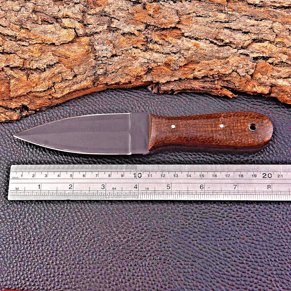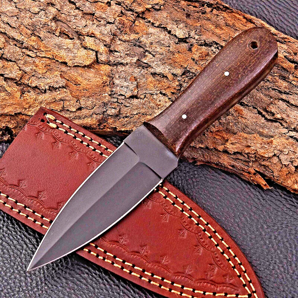 CUSTOM HANDMADE CARBON STEEL BOOT KNIFE DAGGER HUNTING KNIFE CAMPING SURVIVAL EDC KNIFE Micarta Handle This superb design knife is handmade. Blade of this knife has a nice file work and is made of 512 layers of 4340 stainless steel and 1075 high carbon steel and hardness 55-58 HRC . This robust knife is lab tested under intense conditions, the balance and shape of this knife ensures perfect grip. Overall Length: 8" Inches Blade Length: 4" Inches Handle Length: 4" Inches Sheath: Leather
