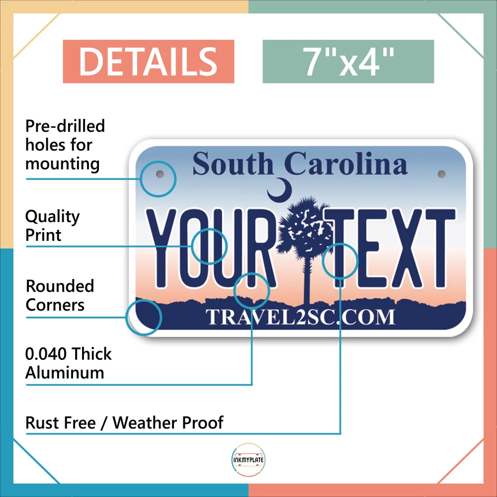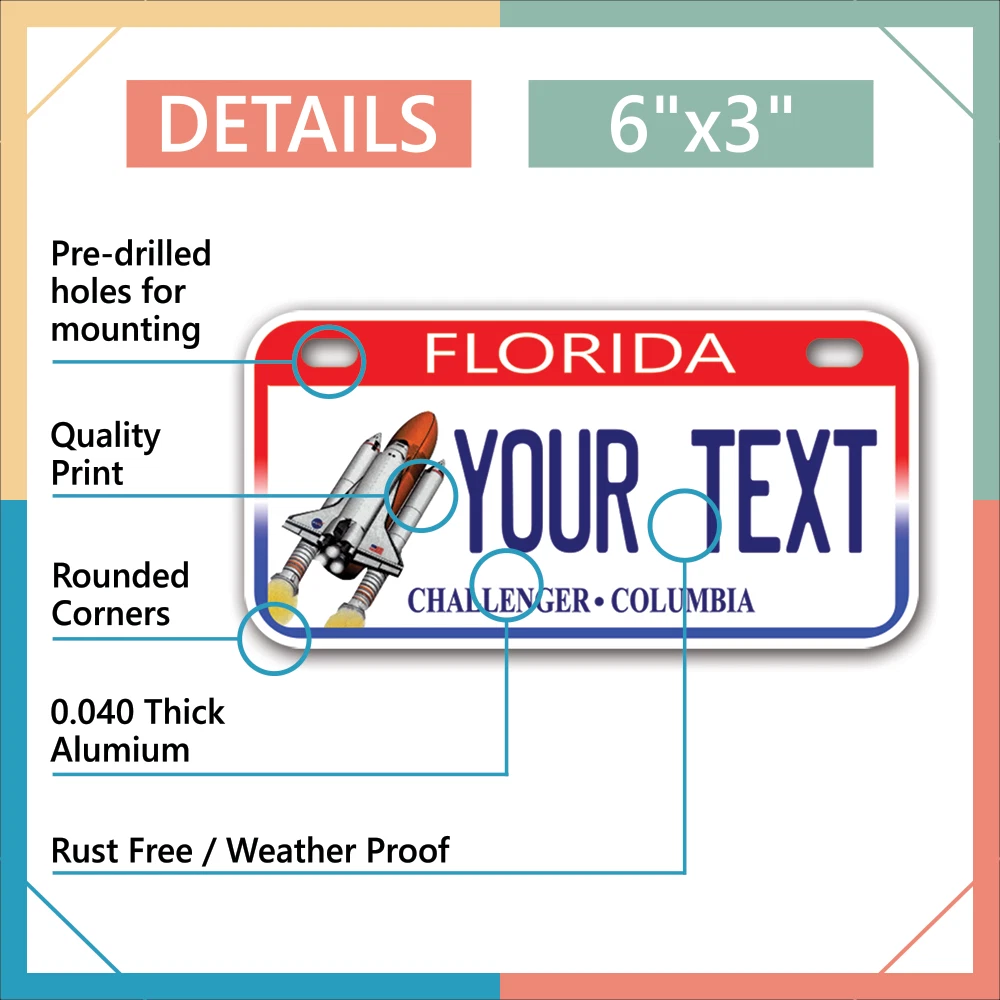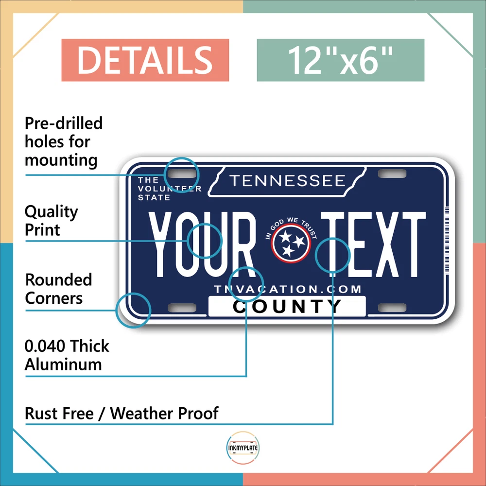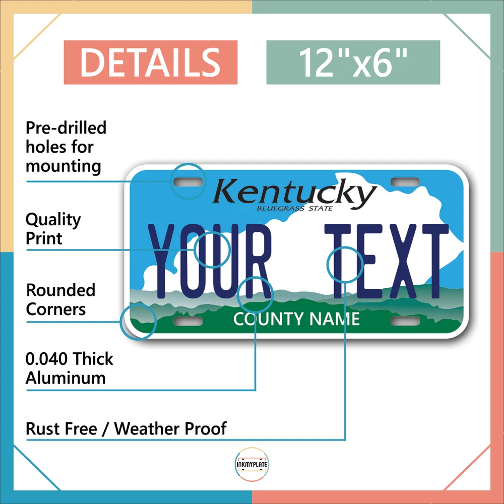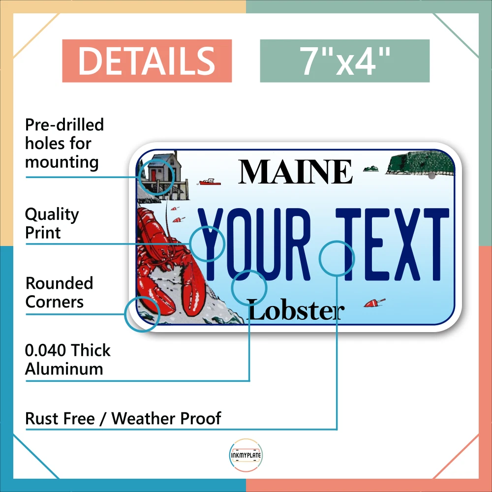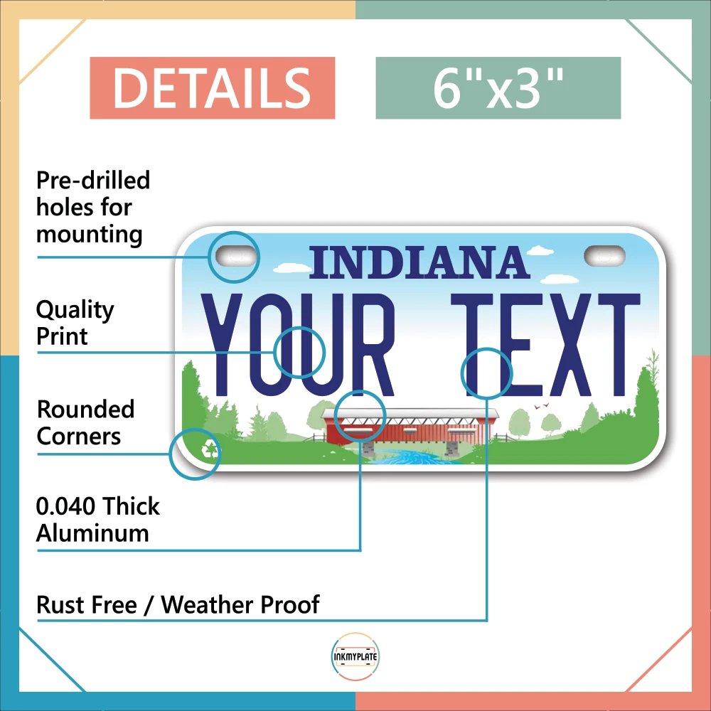 Our LICENSE plates are the most unique souvenirs from the United States, Choose between 50 states and 3 different sizes. Cannot be used in place of a state issued plate. IMPORTANT DESCRIPTION • Plates are made using High quality thick 040 rust free Aluminum. • Our plates are printed flat, not raised. The customizing is done using the latest UV Laser technique for weatherproof and high-quality finish. • 100% made in USA. • Standard car plate has four holes and can be used for trucks, motor homes, and more • M otorcycle plates have 2 holes on top for mounting and can be used on ATVS, Mopeds, Snowmobiles, wheelchairs and golf carts • B ike plates have two holes on top and can also be used for toy cars, wagons, electric toy cars, tricycles and more • Write your text in the personalization section. The text will be copied and pasted on the license plate as sent, so make sure of the spelling, punctuation, capitalization, etc. If you have any question regarding your text or you would like a preview, please let us know by adding a note or contacting Alabama | Alaska | Arizona | Arkansas | California | Colorado | Connecticut | Delaware | Florida | Georgia | Hawaii | Idaho | Illinois | Indiana | Iowa | Kansas | Kentucky | Louisiana | Maine | Maryland | Massachusetts | Michigan | Minnesota | Mississippi | Missouri | Montana | Nebraska | Nevada | New Hampshire | New Jersey | New Mexico | New York | North Carolina | North Dakota | Ohio | Oklahoma | Oregon | Pennsylvania | Puerto Rico | Rhode Island | South Carolina | South Dakota | Tennessee | Texas | Utah | Vermont | Virginia | Washington | West Virginia | Wisconsin | Wyoming