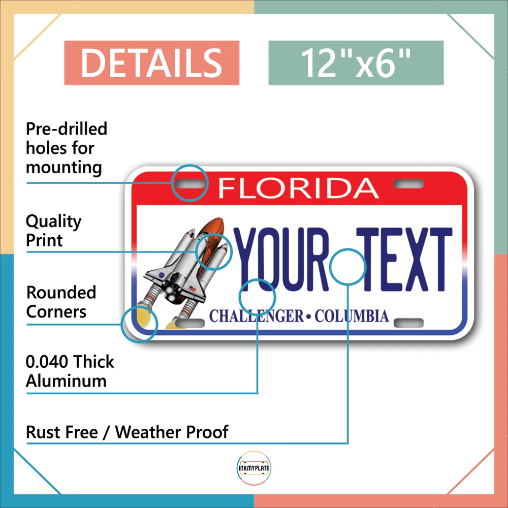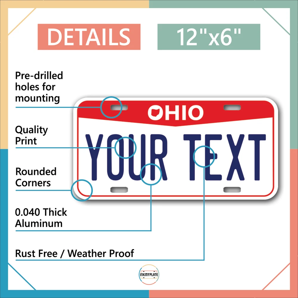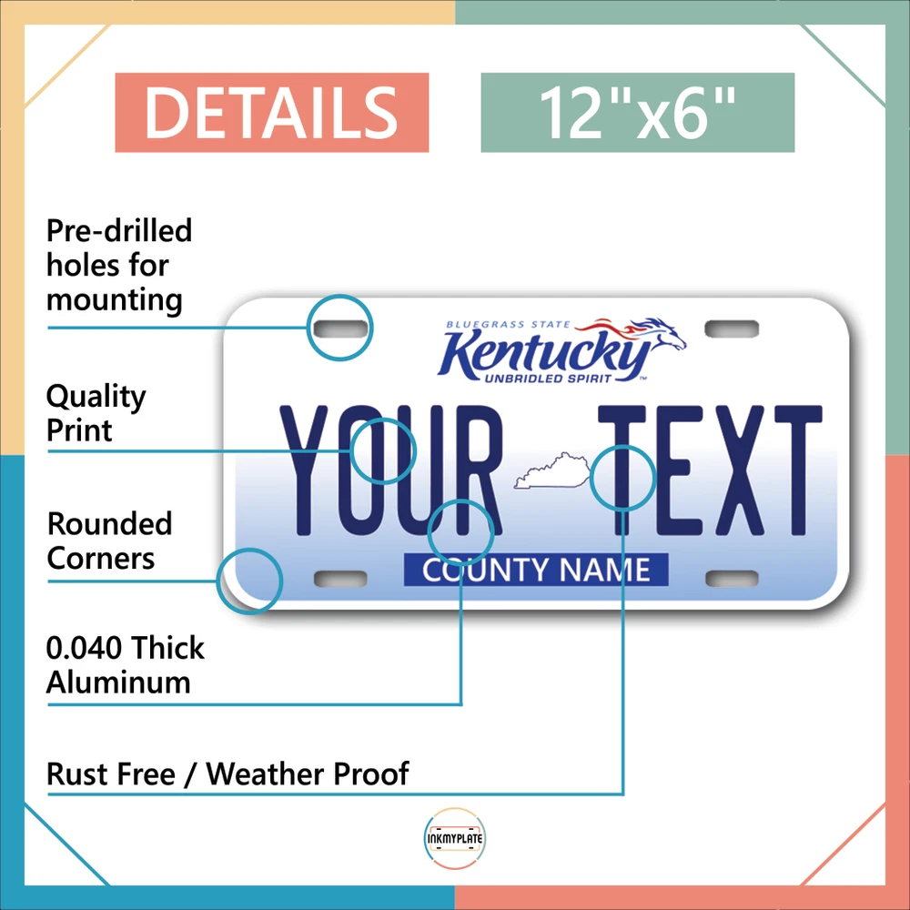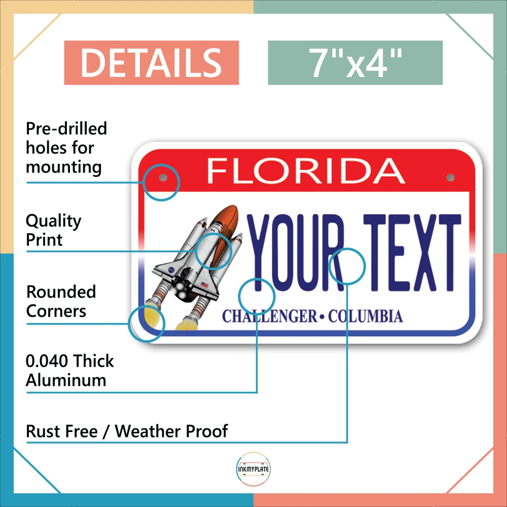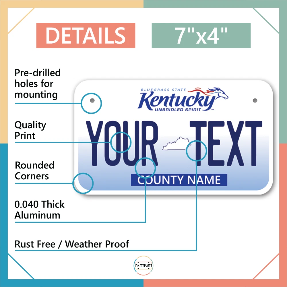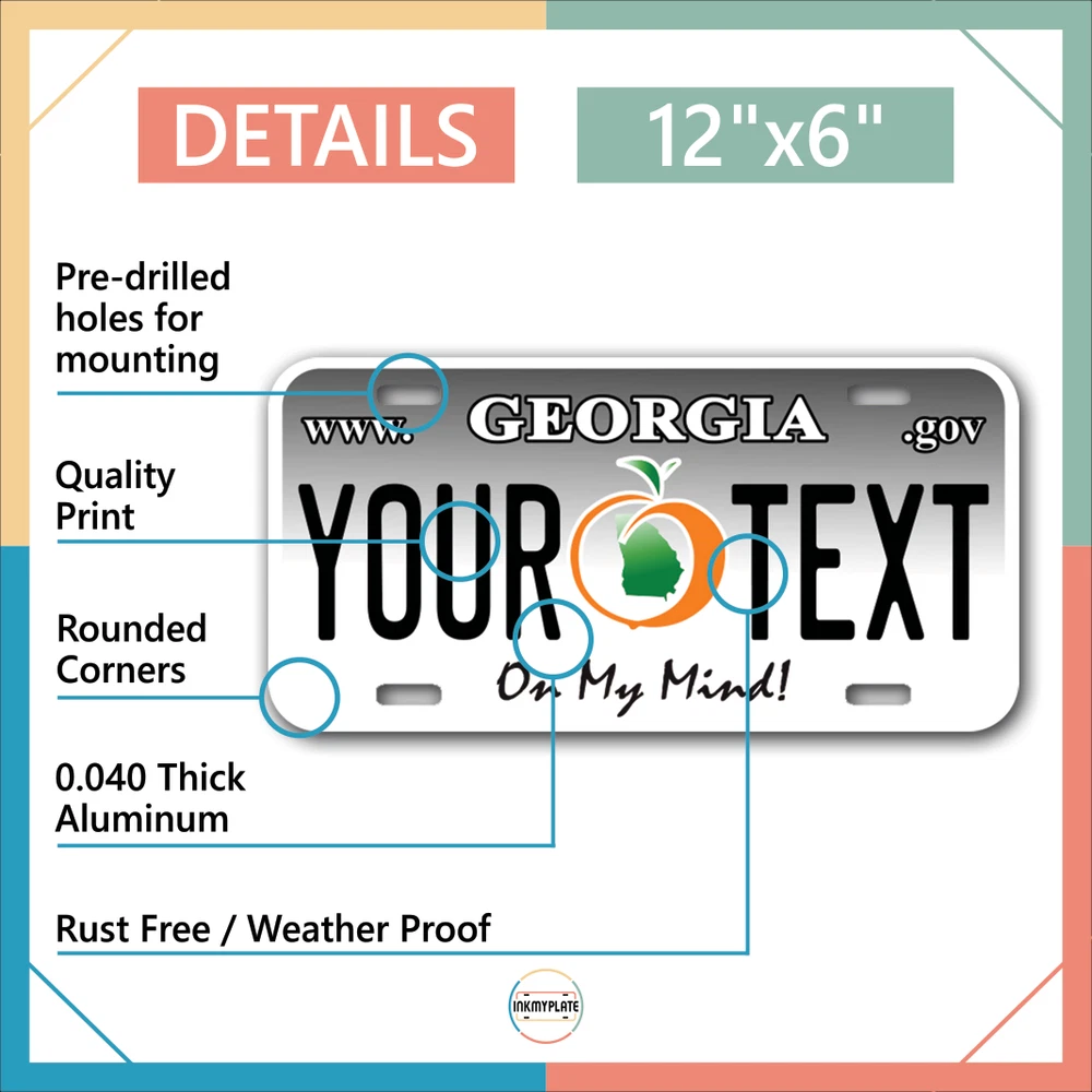 Our LICENSE plates are the most unique souvenirs from the United States, Choose between 50 states and 3 different sizes. Cannot be used in place of a state issued plate. IMPORTANT DESCRIPTION • Plates are made using High quality thick 040 rust free Aluminum. • Our plates are printed flat, not raised. The customizing is done using the latest UV Laser technique for weatherproof and high-quality finish. • 100% made in USA. • Standard car plate has four holes and can be used for trucks, motor homes, and more • M otorcycle plates have 2 holes on top for mounting and can be used on ATVS, Mopeds, Snowmobiles, wheelchairs and golf carts • B ike plates have two holes on top and can also be used for toy cars, wagons, electric toy cars, tricycles and more • Write your text in the personalization section. The text will be copied and pasted on the license plate as sent, so make sure of the spelling, punctuation, capitalization, etc. If you have any question regarding your text or you would like a preview, please let us know by adding a note or contacting Alabama | Alaska | Arizona | Arkansas | California | Colorado | Connecticut | Delaware | Florida | Georgia | Hawaii | Idaho | Illinois | Indiana | Iowa | Kansas | Kentucky | Louisiana | Maine | Maryland | Massachusetts | Michigan | Minnesota | Mississippi | Missouri | Montana | Nebraska | Nevada | New Hampshire | New Jersey | New Mexico | New York | North Carolina | North Dakota | Ohio | Oklahoma | Oregon | Pennsylvania | Puerto Rico | Rhode Island | South Carolina | South Dakota | Tennessee | Texas | Utah | Vermont | Virginia | Washington | West Virginia | Wisconsin | Wyoming
