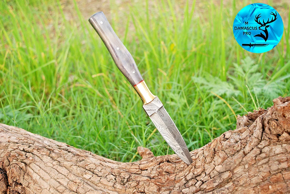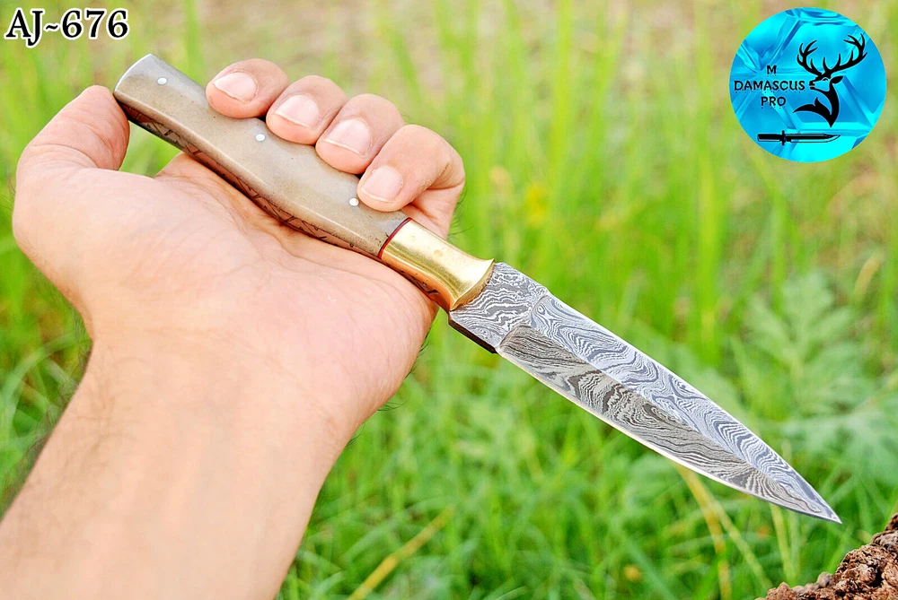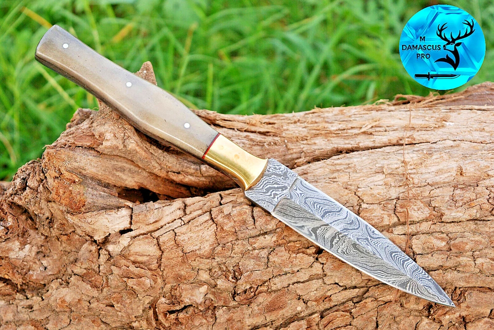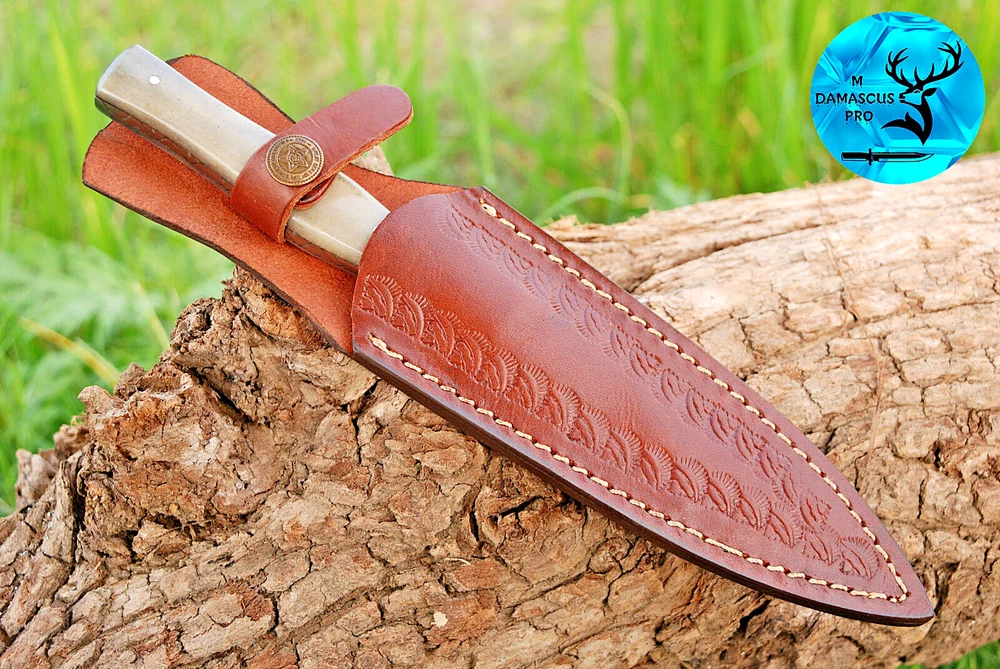 CUSTOM HANDMADE FORGED DAMASCUS STEEL BOOT KNIFE This superb design knife is hand forged. Blade of this knife has a nice file work and is made of 512 layers of 4340 stainless steel and 1075 high carbon steel and hardness 55-58 HRC . This robust knife is lab tested under intense conditions, the balance and shape of this knife ensures perfect grip. Overall Length: 9" Inches Blade Length: 4" Inches Handle Length: 4.5" Inches Damascus Design: Twist Pattern Layers: 512 Sheath: Leather Hardness: 55-58 HRC Package Includes: with Sheath Care Instructions: Keep the knife dry after each cleaning. Warning: Take care when removing product from packaging. Keep fingers clear of blades. Store away from children.