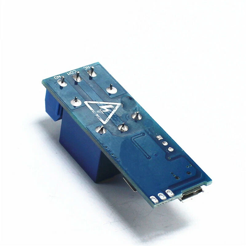 DC 5V-30V Micro USB Power Adjustable Delay Relay Timer Control Trigger Delay Conduction Relay Switch Module 12V 24V Module features:1. Working voltage: Wide-voltage 5--30V between any voltage, MicroUSB power connector and two solder terminals2. Operating mode: to the module power output of the module state: normally open (NO) and the common terminal (COM) open, normally closed (NC) and the common terminal (COM) is turned on.Originating outside the contact (TRIG) to a low pulse signal, or touch trigger button and instantly, the relay and, working lights, this time, the status of the relay output: normally open (NO) and the common terminal (COM) is turned on, Normally Closed (NC) and the common terminal (COM) is disconnected after 0-24 seconds (this time can be adjusted according to your needs) relay opens after the bell, then relay back to the state before the trigger.3. The time can be adjusted via a potentiometer, default 0-24 seconds. If you need more time, more replaceable capacitor (C2) or potentiometer. Delay time formula: T = 1.1RC. For example: 1M resistor capacitor 22uf then T = 1.1 * 0.000022 * 1000000 = 24.2 seconds.4. With a relay indicator.5. The module can be controlled: 10A 250VAC (AC), 10A 30VDC (direct current) following loads.6. Has freewheeling protection relay.7. signal terminal block is designed with a pull and a filter circuit, anti-jamming capability, suitable for industrial control. Many manufacturers have added optocoupler isolation, but with the trigger signal to the module and not isolation, would not achieve the interference effect. After the test was found to trigger or enhance the stability of end to interference, regardless of this module is the electromagnetic interference environment, or instantly through power module, the relay will not malfunction.8. Size: 5.4 * 1.9 * 1.8cm (L * W * H)9. Weight: 16gApplications:1. The anti-theft alarm delay, building sound and light control lamp switch.2. The vehicle-mounted device is turned on delay, to prevent excessive current when the car ignition burned-board equipment.3. The need to have in order to start the case, to prevent multiple devices simultaneously starting current is too large burning appliances. Module Highlights: Time can be adjusted via a potentiometer , meeting your most occasions MicroUSB 5.0V power supply with input , easy to use 5--30V wide supply voltage External triggering and onboard buttons Two triggering methods With a relay pull-in indicator Interference ability, under various interference will not malfunction relay for industrial control .