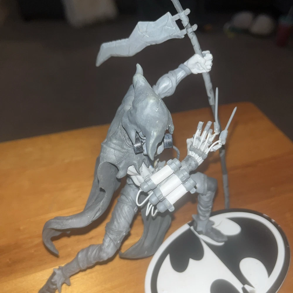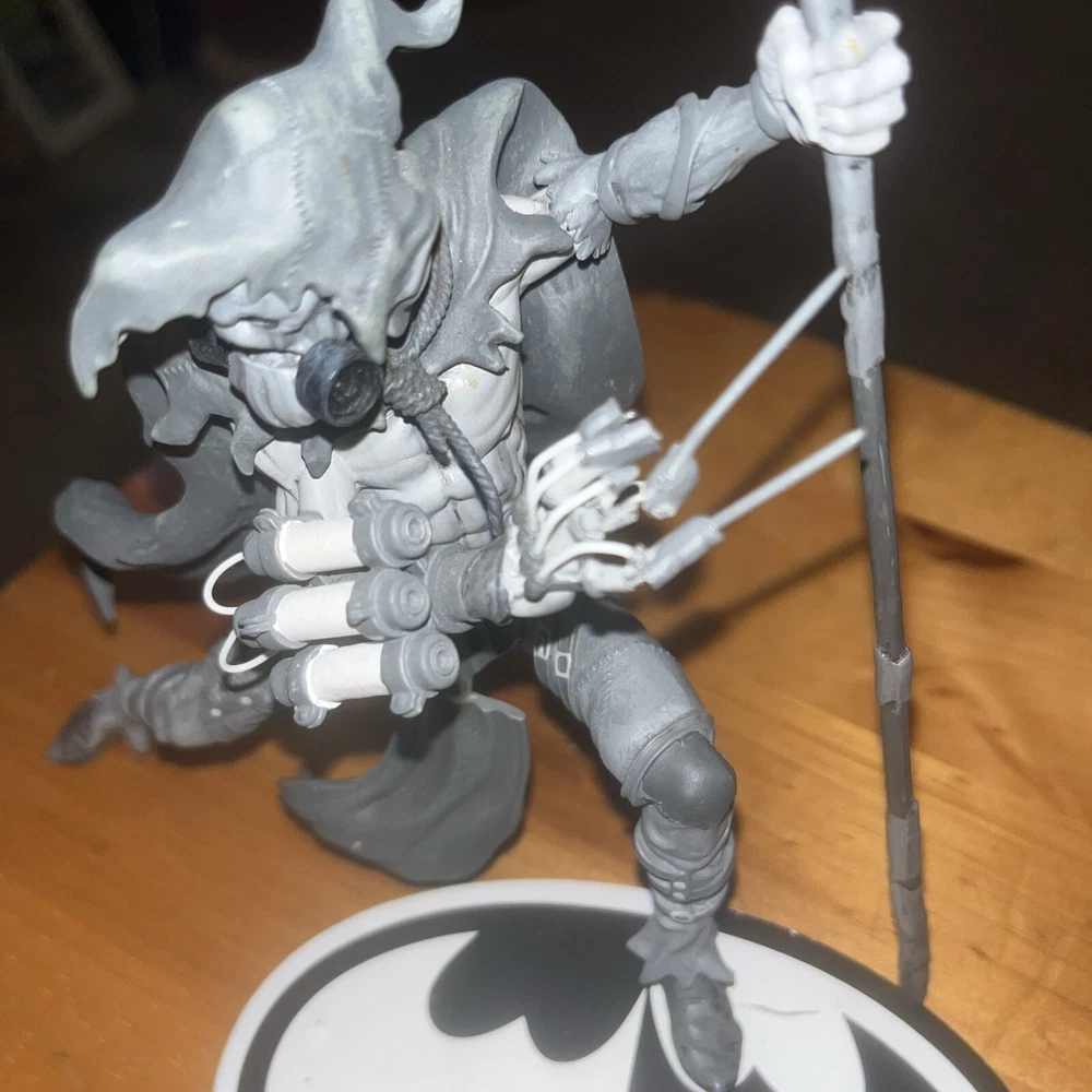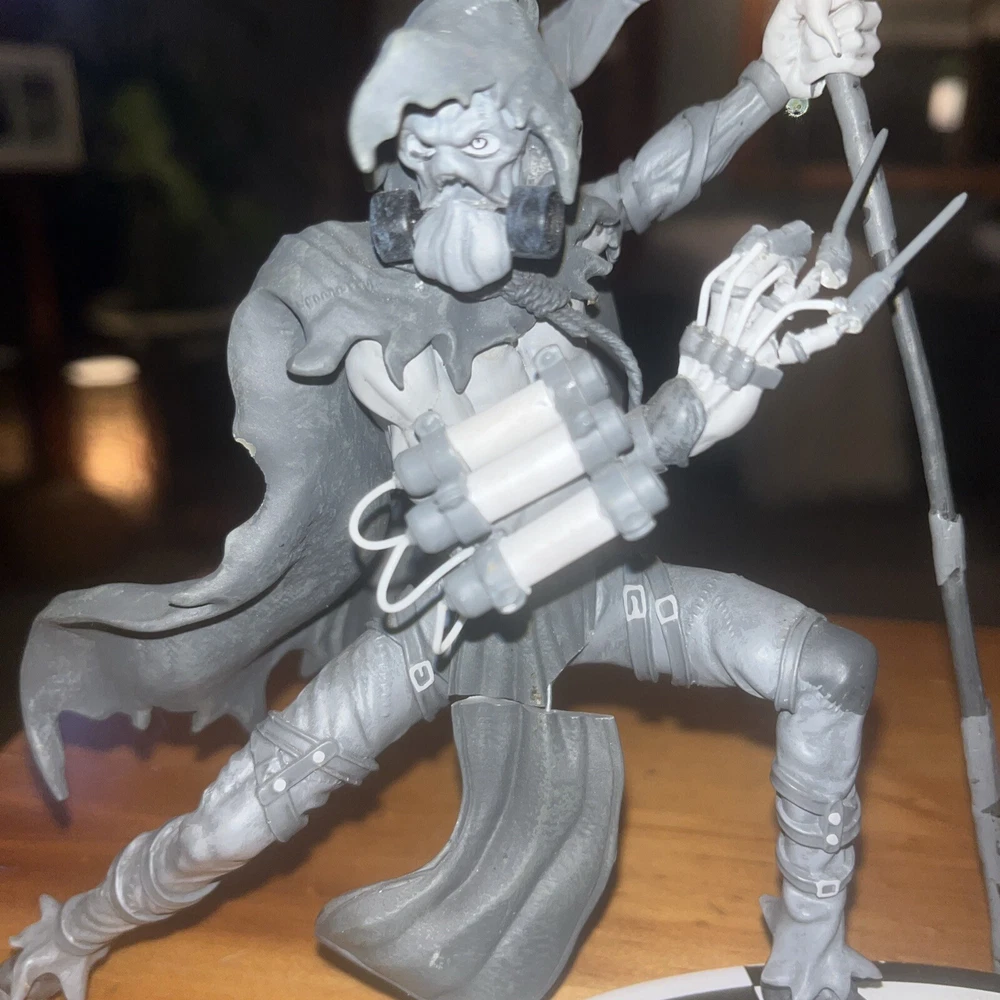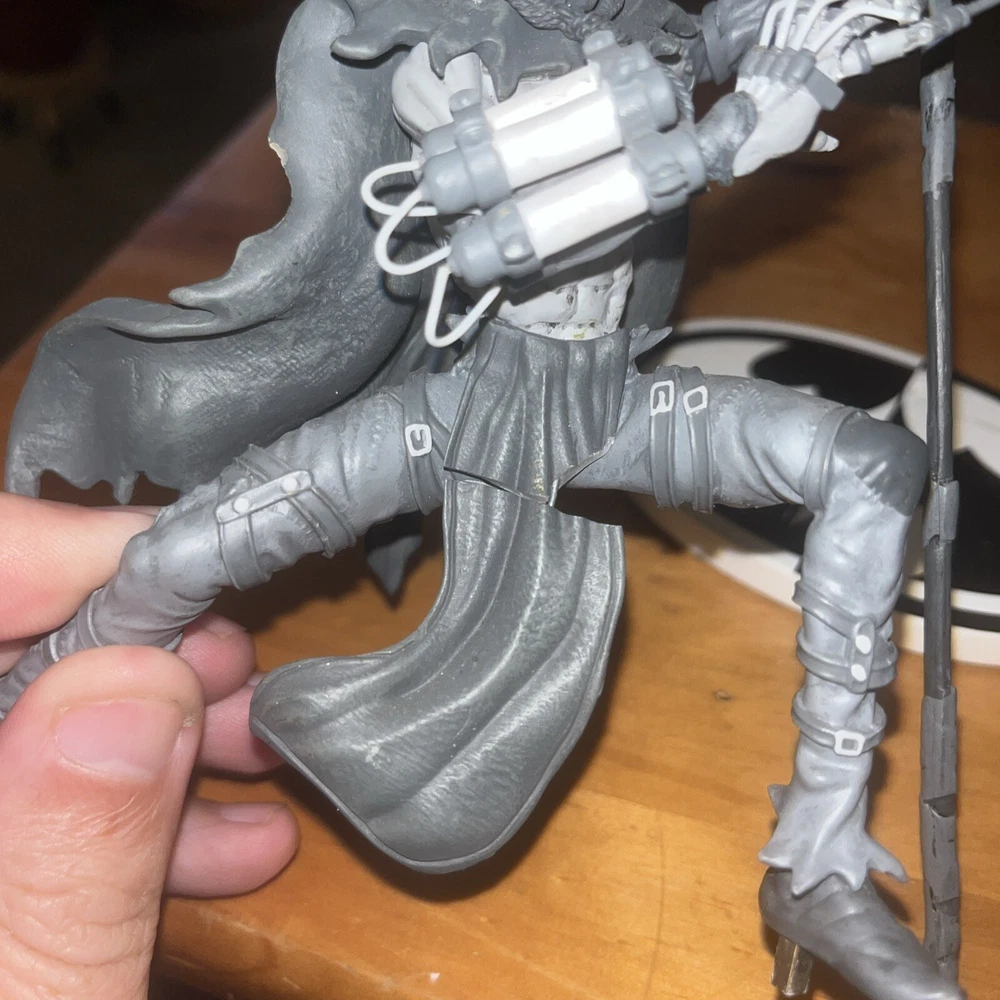 Add this DC Collectibles Batman Black & White Scarecrow statue by Carlos D'Anda to your collection today! This 8" statue features the iconic Batman character in a classic black and white design, perfect for any fan of the Caped Crusader. The detailed sculpt and paint job makes this statue a must-have for any collector or enthusiast. This figure is a great addition to any display or shelf, and is sure to be a conversation starter. The DC Collectibles brand is known for their high-quality and authentic collectibles, and this statue is no exception. Don't miss out on the chance to own this unique piece of Batman memorabilia. Nice piece the cape has a crack and missing 2 finger tips.