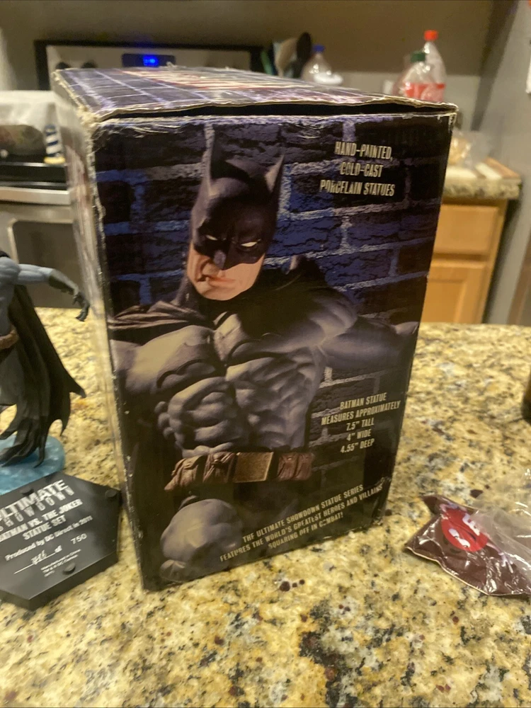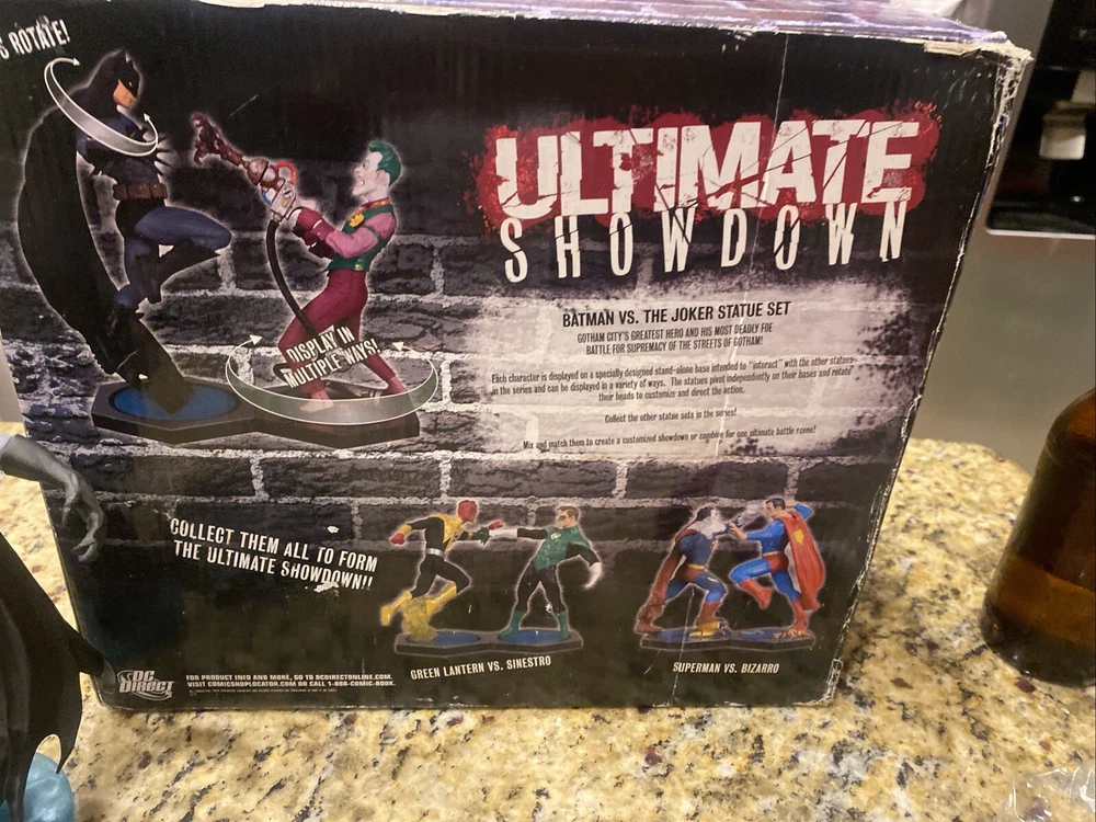 Immerse yourself in the world of Gotham with the DC Direct Ultimate Showdown Batman vs Joker Statue. This collectible captures the iconic clash between the Dynamic Duo and the Clown Prince of Crime in exquisite detail. The statue is a must-have for fans of the franchise, bringing a piece of the Batman saga into your home. Expertly crafted, this piece features the Joker in his menacing attire from the 'Joker' movie, set to pose perfectly alongside Batman. Whether you're a seasoned collector or new to the realm of comic book memorabilia, this non-modified, high-quality statue from DC Direct is a standout addition to any collection.