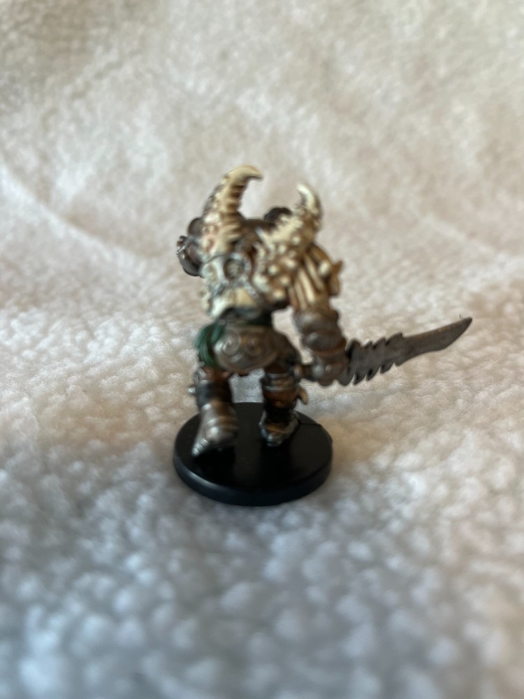 WHAT YOU'RE GETTING: One (1) Warforged Barbarian miniature #24/60 from theD&D Miniatures War Drums expansion set (2006) by Wizards of the Coast. FIGURE DETAILS: • Figure Number: 24/60 • Rarity: RARE • Size: Medium (1-inch base) • Alignment: Chaotic Good • Game Points: 49 • Condition: Pre-owned, excellent condition • Stat Card: NO ABOUT THIS FIGURE: This Rare Warforged Barbarian is a must-have for Eberroncampaign fans! Warforged are living constructs - sentient magical robotscreated for war. This dynamic figure depicts a Warforged in full rage mode,perfect for players running a Warforged character or DMs featuring these iconicEberron creatures. PERFECT FOR: • Eberron campaigns • Warforged player characters • Construct encounters • Barbarian class representation • Eberron collectors **KEYWORDS:** dungeons dragons miniatures, d&d minis,war drums, warforged, eberron, barbarian, construct, rare miniature, livingconstruct, wizards of the coast