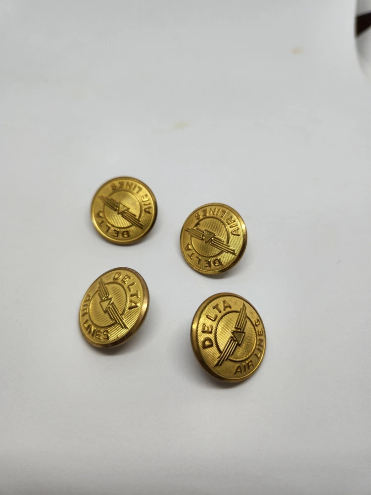 DELTA AIRLINES GOLD COLOR ORIGINAL UNIFORM COAT BUTTONS set of 4.