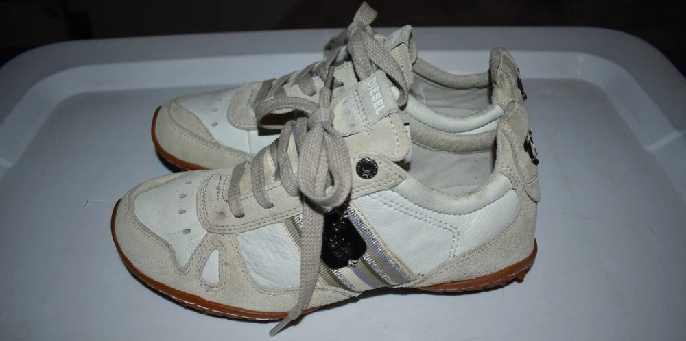 Elevate your casual style with these white Diesel Cheju 78 Suede Running Shoes in woman's size 6. The lace-up closure ensures a secure fit while the low-top shaft style gives you the freedom to move. The leather lining material and rubber outsole material provide comfort and durability for all-day wear. Perfect for summer, fall, and spring, these sneakers are versatile and can be worn on multiple occasions. The suede upper material and lace-up closure make them a stylish and functional choice for any woman who wants to look and feel great. Get ready to step up your shoe game with these Diesel Cheju Suede Running Shoes. Shoes have some wear and dirt not bad, good tread, these type of shoes are form fitting and on the narrow side for foot support. Packed well and shipped fast. See pictures for best details or message, thank you.