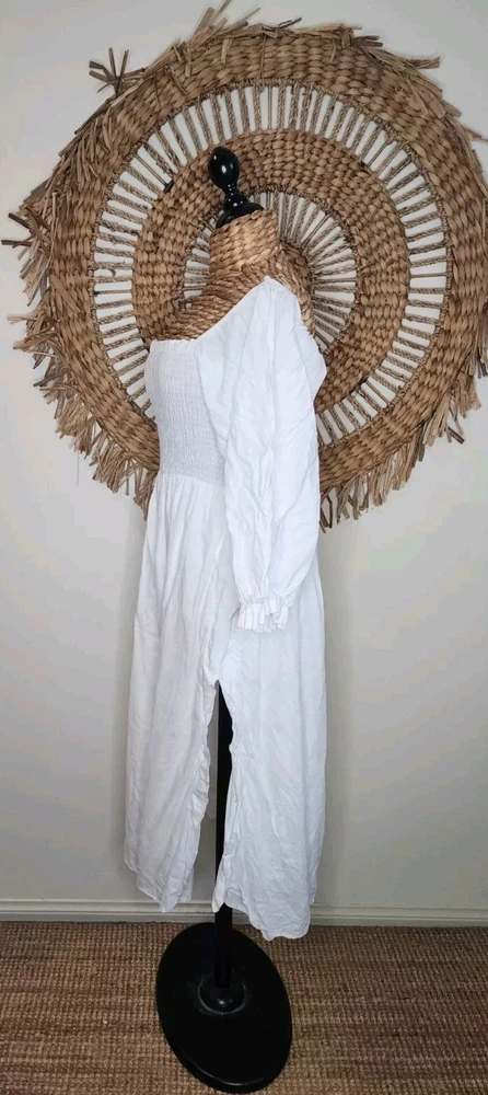 DISSH White Puff Sleeve Linen Dress Size 14 Classic Bohemian Gypsy Measurements: Bust not stretched out 34cm Bust stretched out 55cm Sleeve length 53cm Length 103cm. Please use photos for additional information and a guide as to how to rate them… Colour may vary from photo to photo… Please keep in mind that you are purchasing an item that is second-hand. Most items will show some sign of cosmetic wear throughout the item/garment. Sizes may vary so please read measurements. We do our best to show an accurate representation of the condition in the photos. Sent with Australia Post Standard Parcel in a small/medium or large satchel parcel type bag with a tracking number. All items are packaged and wrapped with extreme care, we use bubble wrapping and cardboard where necessary, and satchels and boxes to deliver clothing and other items. All garments are wrapped in tissue paper. We will recycle as much as we can in regards to packaging. I'm happy to combine purchases when applicable… Express postage upgrade $3