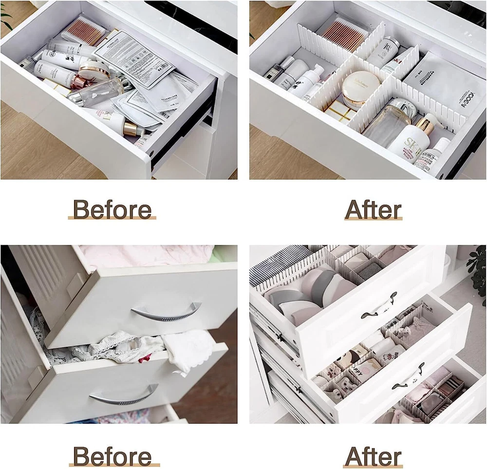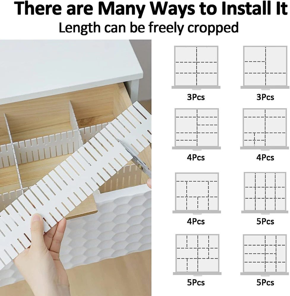 CPO Caption DIY Grid Drawer Dividers Adjustable Sock Underwear Dresser Drawer Organizers NEW Includes 4/8 pcs* Drawer Dividers DETAILS & SPECIFICATIONS Features: Question: Why do you need our Underwear Drawer Organizer ? 1. Make you room tidy and neat with our drawer organizer. 2. Our drawer organizer is the perfect dresser drawer organizer for adults and children as well as baby socks, underwear, ties, underwear, etc. 3. Convenient, lightweight. Easy to fold them when not in use to save space. 4. Suitable for walk-in closet, wardrobe or drawers. METERIAL:Plastic and odorless, 14.5 x2.5inch for each drawer organizer. Features: ADJUSTABLE:The plastic is easy to bend for making custom shapes-bending enough to be able to help you make the divider sizes you need. The plastic can also be cut to size you need by using wire snips. The grid divider is an perfect storage container. ORGANIZED:The cosmetics on table,socks in wardrobe,kitchen condiments and utensils are all neatly stored under the help of DIY drawer organizers divider. Great for kitchen,bathroom and office,like sock,underwear,clothes,dresser,stationary,ect. SAVE TIME:Easy to assemble them,and your goods are organized in the DIY drawer divider. You will not worry about spending more time on organizing drawers. DIY plastic grid drawer dividers like a helpful hand for your better life. Say goodbye to the cluttered wardrobe! Note Pictures are taken in kind, due to the different colors of the display, there may be deviations. Due to manual measurement, there will be an error of +/- 0.1". Thank you for your understanding. WHY OUR CUSTOMERS KEEP SHOPPING WITH US CUSTOMER SERVICE We are available 7 days a week. CUSTOMER SATISFACTION GUARANTEED CPO's commitment to 100% customer satisfaction is backed by a 30-Day Money Back Guarantee for New items and a 60-Day Money Back Guarantee for Recon! Guarantee • Fast & Free Shipping on ALL Orders We believe that you should enjoy the benefit of FREE Shipping on all of your orders within the all Continental States. That's why no matter what you buy, we will ship it for FREE, so the price you see is exactly what you pay. No hidden fees or shipping charges. • Most Items Delivered in 2-6 Business Days When you're buying from us, you deserve fast and reliable service. That's why we have a "Same Business Day" processing in place and wide range of shipping options to choose from in order to deliver your package as soon as possible. *2-6 business days’ time-frame is NOT GUARANTEED and was statistically calculated based on all previous orders. • ALL Orders Placed On Business Days Before 4 PM EST Will Be Shipped Same Day Why wait a day or more for your order to ship? All orders placed before 4 pm EST, Monday to Friday, ship the SAME day. Orders placed on Friday after 4 pm EST, Saturday and Sunday will be shipped the next Monday (if business day). We are closed on all Federal Holidays. • 30 Days Money Back Guaranteed! We will gladly accept your return within 30 days of the original purchase. Please, see below for our full Returns Policy. Shipping • Most orders arrive at your door in 2-6 Business Days FOR FREE! • Place your order before 4 pm EST and it will be shipped the same day, Monday to Friday, excluding major holidays. • We will ship your order to your PayPal Verified address provided. • Please verify your address and make sure that it is your current address before making your payment. Any address change requests after your payment CANNOT be guaranteed. • We do not include invoice with our shipments. Feedback • Positive feedback is automatically done once your order is shipped. • We appreciate all our customers to post a Positive Feedback and "Five-Star" scores. • If for any reason you are not satisfied with your purchase. Please contact us via eBay Message and We will do our best to satisfy you! Payment & Cancellation • Instant PayPal payment is required. • We also accepts Visa, MasterCard, Discover, and American Express through PayPal guest checkout. • Sales tax is charged by eBay based on your shipping address. • To uphold a shipping speed, your order will be processed almost immediately. If you change your mind after your payment is confirmed, we will do our best to stop the order, however, we CANNOT guarantee the cancellation. Return • We will gladly accept your return within 30-Days of the original purchase. • Our return process is simple and fast: 1. We will pay for the return shipping label if you received a broken/defective item(s) or the item(s) doesn't match our description. As soon as we receive the item(s) back we will process a refund for the item(s)which was/were returned. 2. You will be required to pay for the return shipping label if you changed your mind or no longer need the item(s). As soon as we receive the item(s) back we will process a refund for the item(s) which was/were returned. • If we'll receive a package back because of the incorrect address, the refund will be processed excluding our shipping cost. Contact Us • Send us a message on eBay and we will answer within 24h on business days.