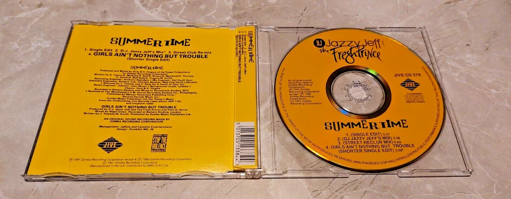 A CD SINGLE EP ( 4 TRACKS ) IN NEAR MINT CONDITION FROM 1991 DJ JAZZY JEFF & THE FRESH PRINCE * SUMMERTIME * 1 Summertime (Single Edit) 3:58 2 Summertime (D.J. Jazzy Jeff's Mix) 5:38 3 Summertime (Street Club Re-Mix) 6:05 4 Girls Ain't Nothing But Trouble (Shorter Single Edit) 4:05 THANKS FOR LOOKING!!!!!!!!!!