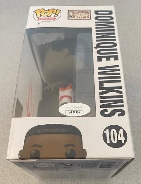 DOMINIQUE WILKINS SIGNED AUTOGRAPHED AUTO FUNKO POP! #104 JSA AUTHENTICATED #AP54534 **ATLANTA HAWKS**. COMES WITH CERT CARD FROM JSA. SEE PHOTOS TO APPRECIATE!