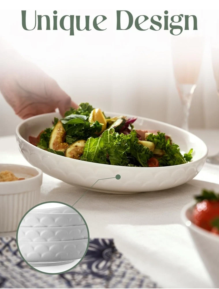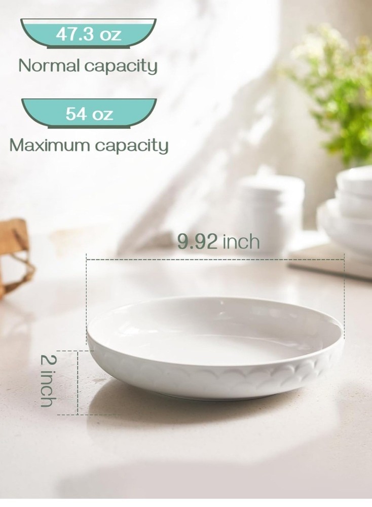 DOWAN Pasta Bowls, 54 oz Large Salad Serving Bowls, 10'' Plates Bowls Set of 4, White Ceramic Soup Bowls for Kitchen Meal Prep, Shallow Dishes Dinner Bowl Microwave Dishwasher Safe #15.11.25