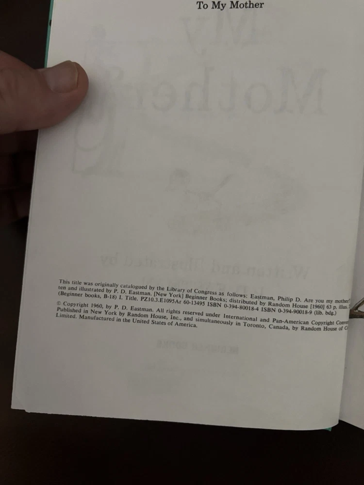 This vintage 1960 Hardcover Book Club Edition of "Are You My Mother?" by P.D. Eastman is a beloved classic in children's literature. The book, intended for preschool to second grade readers, features large print and illustrations by the author. Published by Random House Children's Books, this book explores themes of family, parents, and animals, making it a charming and engaging read for young audiences. This special edition with a sturdy hardcover binding is a collector's item for fans of P.D. Eastman's work and those who appreciate classic juvenile fiction.