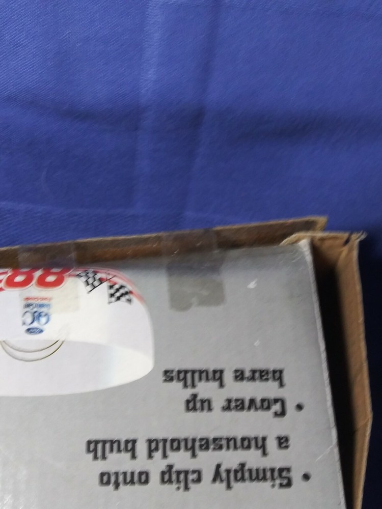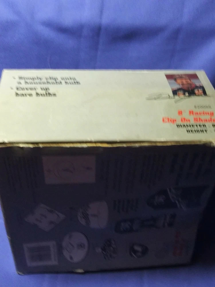 Product:Clip on light fixture shadeUPC:Does not applyLeague:NASCARGender:UnisexCountry/Region of Manufacture:ChinaSport:Racing-NASCARTeam:Dale JarrettColor:Multi-ColorPlayer:Dale Jarrettgtin13:Does not applyBrand:AbcoSize:8 inModified Item:NoDriver:Dale Jarrett