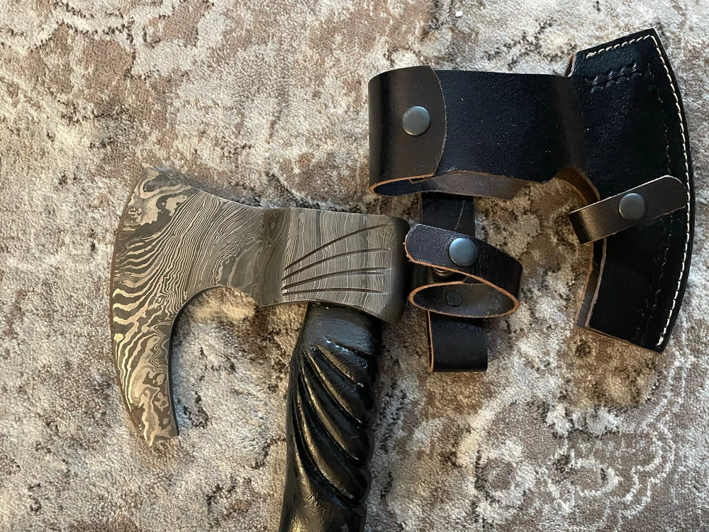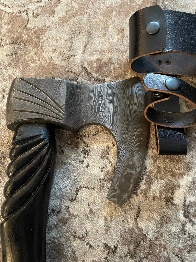 Damascus Carbon Steel Viking Axe Custom Hand Forged Ash Wood Shaft