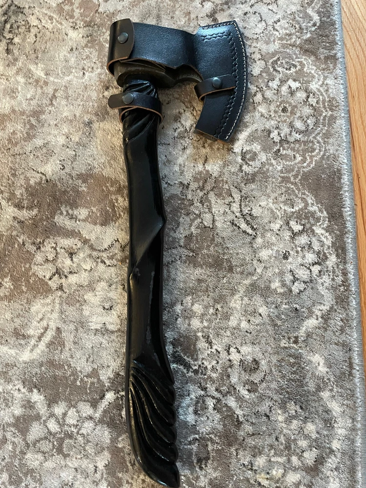 Custom Hand Forged Damascus Carbon Steel Viking Axe Ash Wood Shaft.