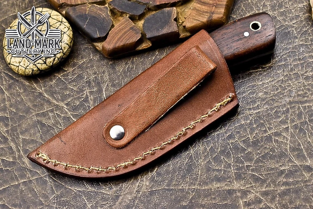 Custom Hand Made DAMASCUS STEEL HUNTING KNIFE WITH ROSE WOOD HANDLE We offer a shipping discount for More then one purchased . And discount will be apply on combine invoice, Discount will not apply on separate payment. ITEM DETAILS OVER ALL LENGTH 3.0 inches long (Approx) HANDLE LENGTH 1.5 inches long (Approx) BLADE LENGTH 1.5 inches long (Approx) BLADE HARDNESS 58-60 HRC Which Holds The Sharp Edge For Long Time. HANDLE ROSE WOOD COVER LEATHER SHEATH This Awesome custom made KNIFE has a nice hand forged with the combination of 4340 & 1080 steel. HOW OUR DAMASCUS IS MADE: All our Damascus is real and not just an acid etch. Damascus is a mixture of 1080HC and 4340 nickel carbon. You heat them up together and then fold the bar over and over to get the desired layers, ours are 396 layers. Then you burn the blade in acid, and it turns the nickel satin color and the high carbon turns blackish gray. This is how the layers are exposed to show the layers of the new steel created coined "Damascus". All Damascus is acid etched to show the layers. If you high polish the metal it will be shinny satin like all steels. Only after you burn the sides of the blade with acid do you see the layers of the two steels. Makes sense? After we make our knives we high polish the handles and put an edge on the blade. The high polishing buffs off the acid burned layer of the handle, and the blade edge is sharpened and the acid burned edge becomes satin. You can re-burn the tang of the blade near the handles and the edge of the blade and it will show the layers once more. All our knives are hand made, durable and unique ***** YOU WILL RECEIVED THE SAME KNIFE Qality Standards Our Damascus blades are made from high quality non-stainless steels which rival or exceed any Damascus blade made from the 10 series with 4340. Our Damascus combination has taken years to perfect and has been tested under a variety of application which will offer professional performance in categories of toughness, strength (lateral stress) and edge honing and holding ability. In a 5 spot Rockwell test our blades will average near or close to 58 which offers a perfect balances between its toughness and strength.Our blades due to carbon content need to be regularly treated with wax and/or 3 in 1 oil to maintain its superior quality. Questions if you have any question feel free to send us message we aim to answer all questions within 24 hours Feedback If you are not satisfied with our service please contact us before leaving any negative or natural feedback. We will resolve all issues as quickly as possible. Disclaimer We are not responsible for any injuries associated with the use of our tools. Our products are intended for legal use only by responsible buyers. Therefore, we will not sell our products to anyone under the age of 18. Before bidding please check your country laws as some countries Custom don't allow this. If your purchase is held by Custom Authorities in your country/State we will not be responsible for that and no refund will be issued Shipping We offer a 20% shipping discount for More then one purchased . And discount will be apply on combine invoice, Discount will not apply on separate payment We ship within 24 hours after receiving complete payment but this can be delayed due to week ends or Governments and Religious Festivals . . This is beyond our control and we apologize for this inconvenience. Precautions Our Tools are very sharp so open and use them very carefully We are not responsible for any injuries associated with the use of our tools Tips to Care knife 1. NEVER STORE YOUR KNIFE FOR LONG TIME IN LEATHER SHEATH. 2. LEATHER CAN ABSORB WATER, WHICH WILL RUST THE KNIFE. 3. ALWAYS CLEAN THE BLADE AFTER USING WITH OIL OR WAX