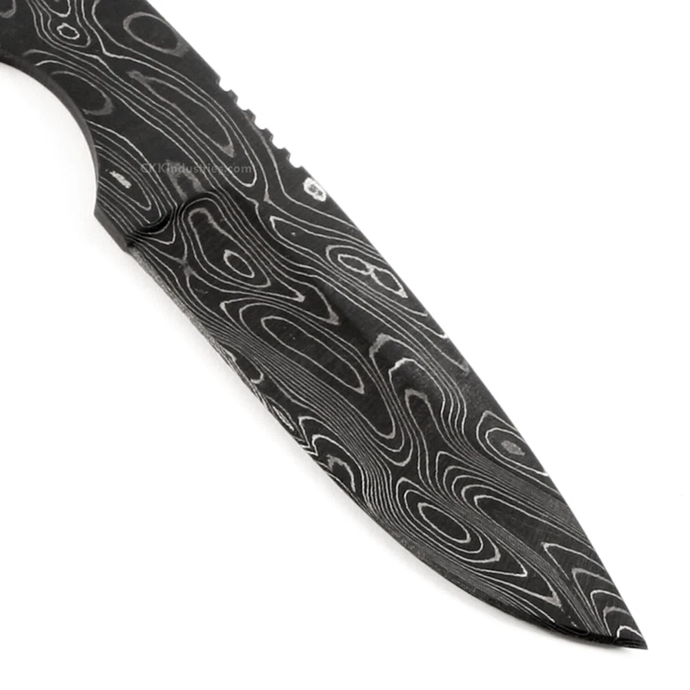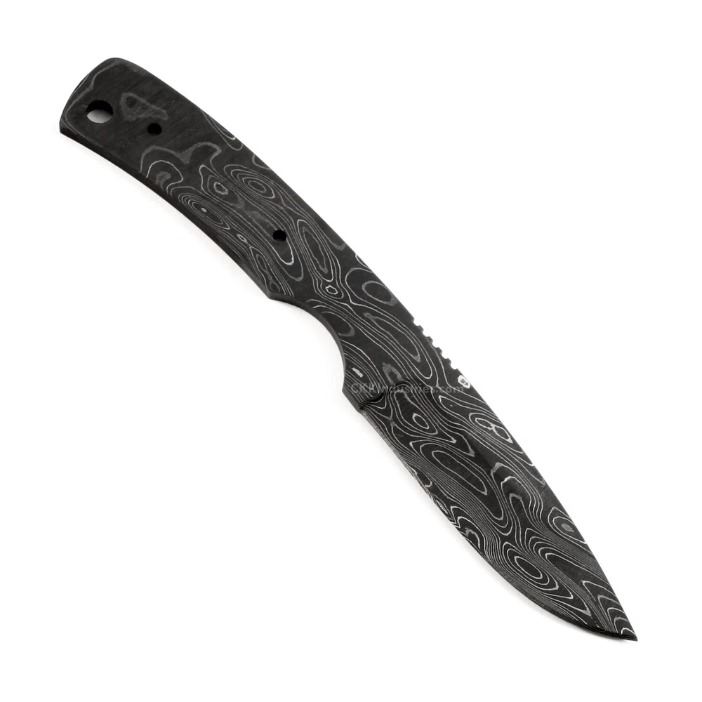 Damascus Knife Making Kit - Lynx - (7 Handle Options) - DIY Blade Kit This damascus spear point knife kit design is called the "Lynx". It is a USA Made carbon steel damascus fixed blade knife blank that is hollow-ground and ready to build. This damascus spear point knife blank model is a great size for a personal carry knife. Based on the simplicity of the design, it would also serve very well as a collectible gift project. With a blade length of 2.75 inches and an overall length of 7.125 inches, this design is very popular as a personal utility knife. Ground on both sides, the blade is 0.93 Inches wide. This damascus full tang blade blank design features (2) 0.125 inches through-holes for handle construction (stainless steel pinstock included) with a 0.250 inch thong hole for an optional lanyard, if desired. The tang holes can be modified with ease to work with larger pinstock, or with threaded fasteners.s. Specifications Blade Length = 2.75 Inches Overall Length = 7.125 Inches Tang Holes (2) 0.125 Inches Handle Pinstock Included = Yes Thong Holes (1) 0.250 Inches Heat Treated = Yes Hardness: 56-58 RC Handle Material Included = Yes (If Selected) USA Made Damascus Configuration 3 Layers 52100 4 Layers 5160 3 Layers 203E 3 Layers 15n20 Folded = 5 times Total Layers = 416 For more knife making kits, knife making supplies, and sheath making supplies, see "https://www.ebay.com/usr/ckkindustries"