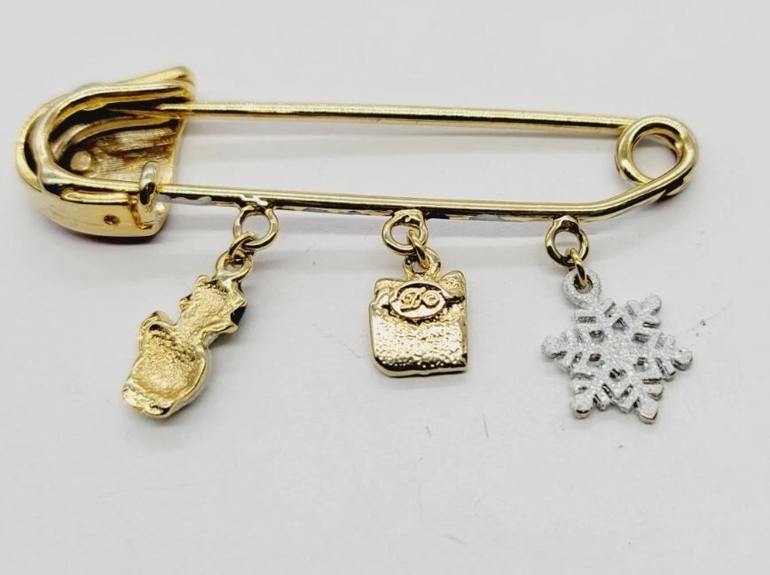 Danecraft Safety Pin Christmas Charm Brooch Gift Santa Gold tone Dangle RARE