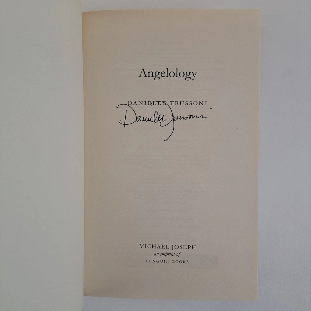 ANGELOLOGY [Signed] Author: Trussoni, Danielle Title: ANGELOLOGY [Signed] Publication: London: Michael Joseph, 2010 Edition: First UK Edition, First Printing Description: Octavo, 451 pages. In Very Good condition with a Near Fine dust jacket. Black spine with white and gilted red text. Dust jacket is protected with a mylar covering, price uncut '£12.99'. Dust jacket shows minor wear on tail edge of spine. Boards show mild wear on head and tail edges of spine Signed flat by Danielle Trussoni on title page. Shelved in Hallway. Seller ID: 1388952 Subject: Literature Welcome to the eBay store of Second Story Books! DC's Oldest Rare and Used Bookstore, Second Story Books operates two open shops in the Washington D.C. metropolitan area. We have an extensive internet presence and provide accredited appraisals member ASA. This listing was created by Bibliopolis.