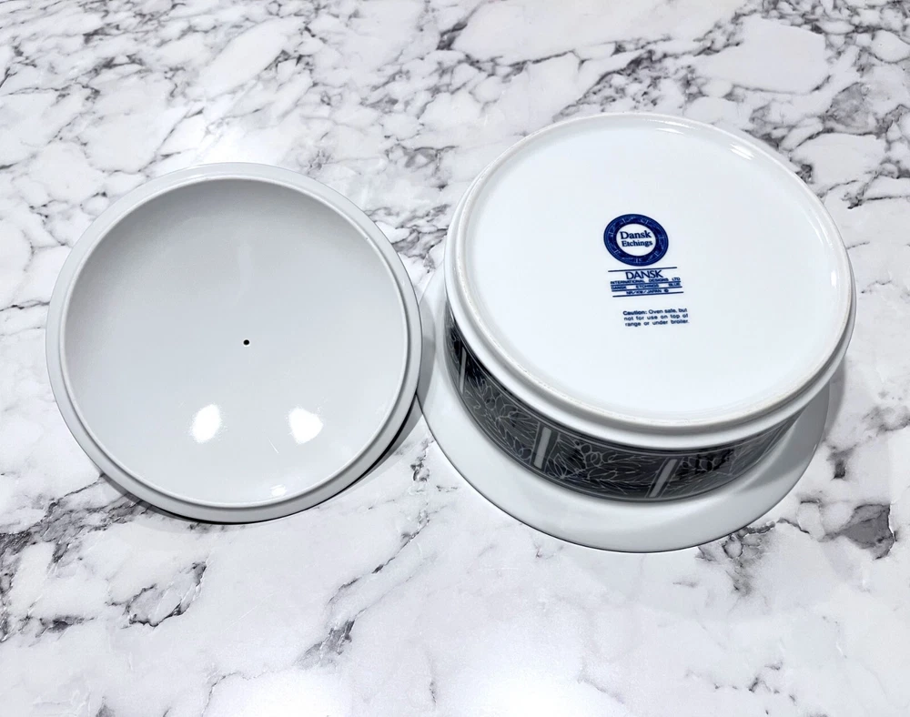 Dansk Etchings 1 1/2 Quart Oven-To-Table Covered Casserole ~ * beautiful casserole in fabulous condition, hard to find item * oven safe, but not for use on range/stove top or under broiler * measures 9 3/4" wide / 3 3/4" high not including cover / the opening is 7" wide x 2 1/2" deep / holds 6 cups of water Pictures shown are actual items for sale, not stock images I will do combined shipping if feasible, purchased items will be packaged with care ~ Thank you for shopping in my store ~