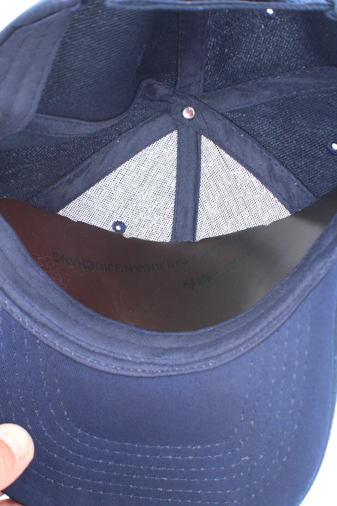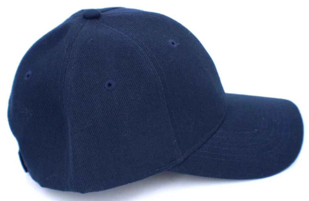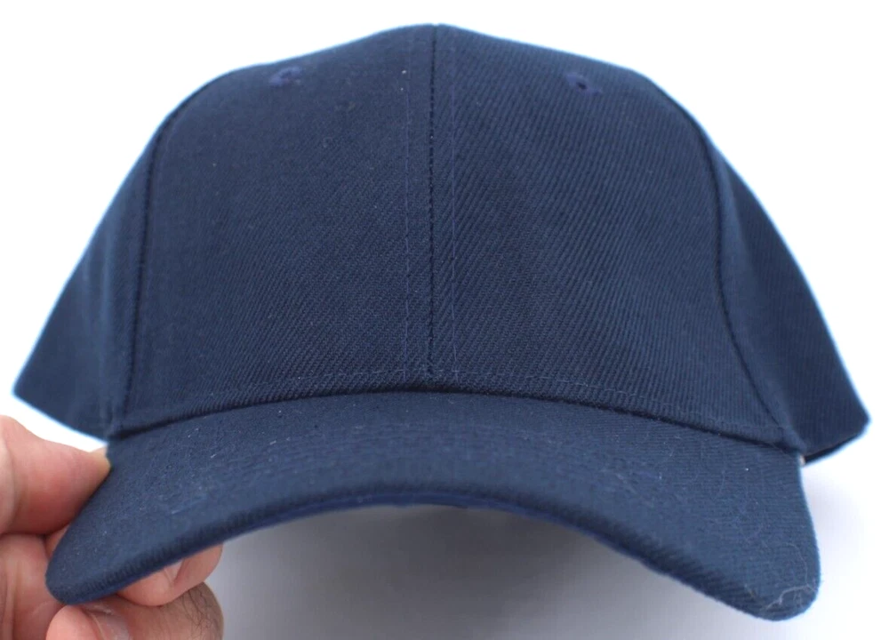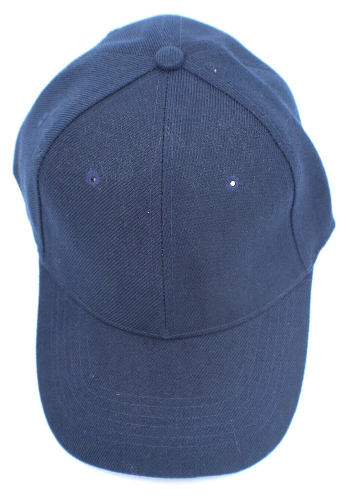 Dark Blue Baseball Cap Hat Solid Hook Loop Adjustable Back Brand New 6 Panel, One Size Fits All See Photos 80% Acrylic 20% Wool