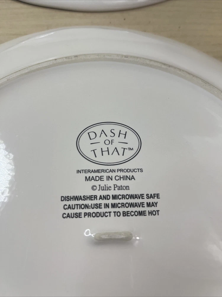 Color: Multicolor Brand: Dash Of That Type: Dinner Plate Country/Region of Manufacture: China Material: Ceramic Seller Notes: “Preowned condition may show utensils marks from normal use check pictures carefully.” Number of Items in Set: Four-Piece Shape: Round Original/Reproduction: Original