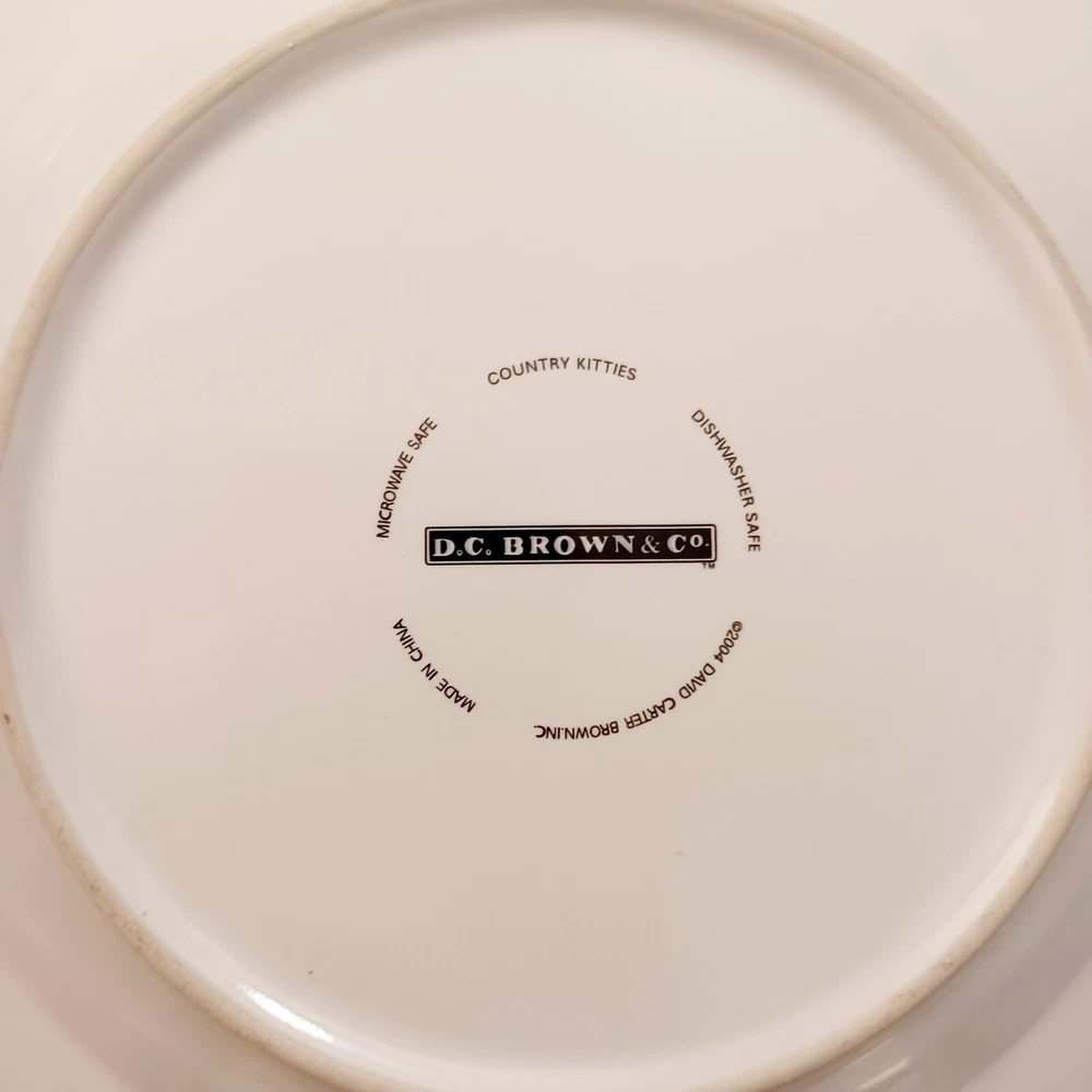 David Carter Brown Country Kitties Salad Plates Dessert Plates Cats Set of 4 - Signed 2004 D.C. Brown & Co. Microwave & Dishwasher Safe Very Good Condition See pics for condition
