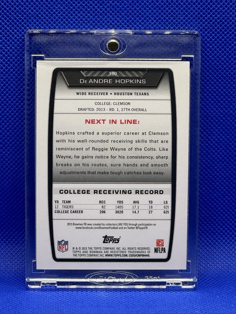 DeAndre Hopkins RARE ROOKIE RC 2013 BOWMAN INVESTMENT CARD CHIEFS!