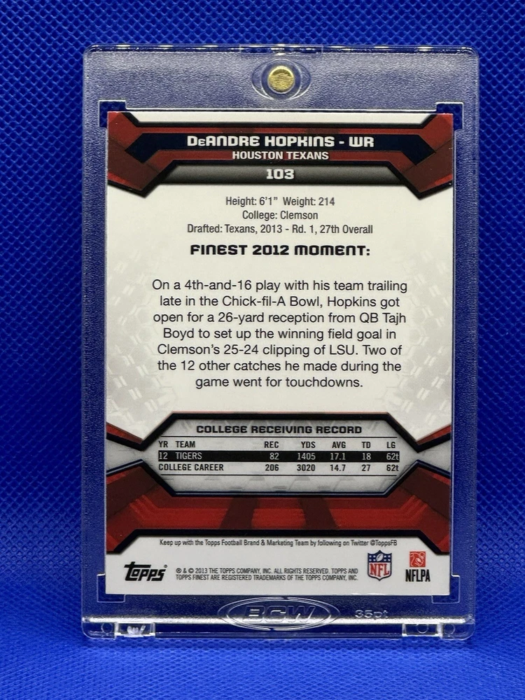 DeAndre Hopkins RARE ROOKIE RC TOPPS FINEST BASE CLASSIC INVESTMENT CARD CHIEFS!