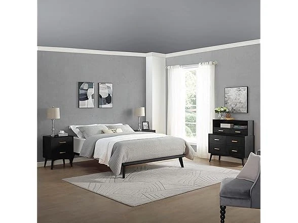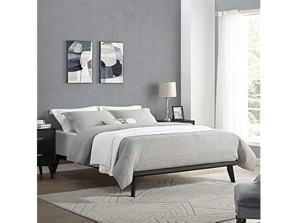 DeCoro Metro Wood Platform Bed, Queen Condition: New Features The Canton Wood Platform Bed is simple yet sophisticated and can work in any home decor style. Its unique 10-inch legs are slightly angled to give that modern retro vibe while the classic wood slats and platform bed is solid enough to support your mattress without the need for a box spring. The platform bed comes in a wide variety of colors and sizes and is easy to assemble so you’ll have your charming bedroom put together before you know it. Add our Canton 4-Drawer Wood Dresser, Two-Drawer Top Storage Hutch, and Nightstand, for an awesome room setting that takes you back but doesn't take all your money. Classic Brands carries a wide variety of platform bed frames and bedroom furniture in an assortment of designs to match your unique taste and style. 10-inch legs with 8.5-inches of storage space beneath No Box Spring Required Easy Assembly; all parts, instructions, and tools are neatly packed in shipping carton; easy to disassemble for storage or moving Frame and solid wood slats are included (mattress sold separately) Specs In the Box: (1) DeCoro Metro Wood Platform Bed, Queen Specifications Item Dimensions: 84.25"L x 63.58"W x 11.06"H Item Weight: 55 pounds Ground to Item Distance: 8.5 inches Weight Supported: 250 pounds Material: Wood Compatible with Mattress Size; Queen Assembly Required: Yes Care Instructions: Clean this item only with a damp cloth. Do not use bleach or abrasive cleaners.