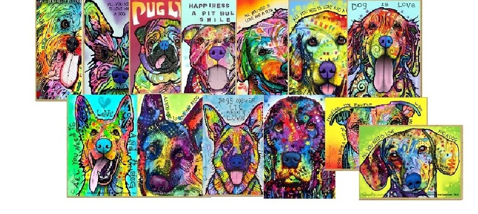 Dean Russo Colorful Dog Fridge Magnets Add some color to your work space, kitchen or anywhere there is a metal surface! These also make great gifts! Featuring the colorful artwork of Dean Russo in a variety of dog breeds and sayings. Each magnet measures 2.5" x 3.5" x 1/8"thick Brand New Fast Free Shipping! Proudly Made in USA!