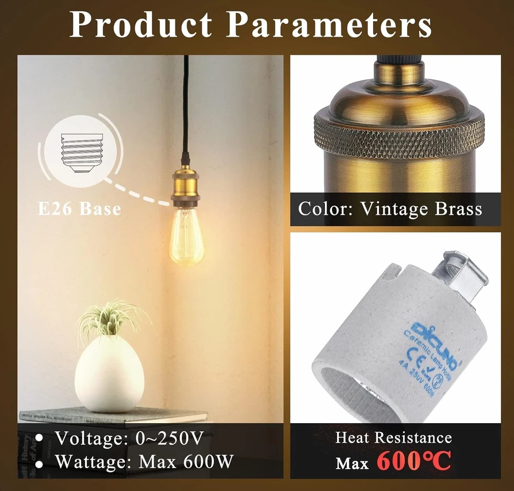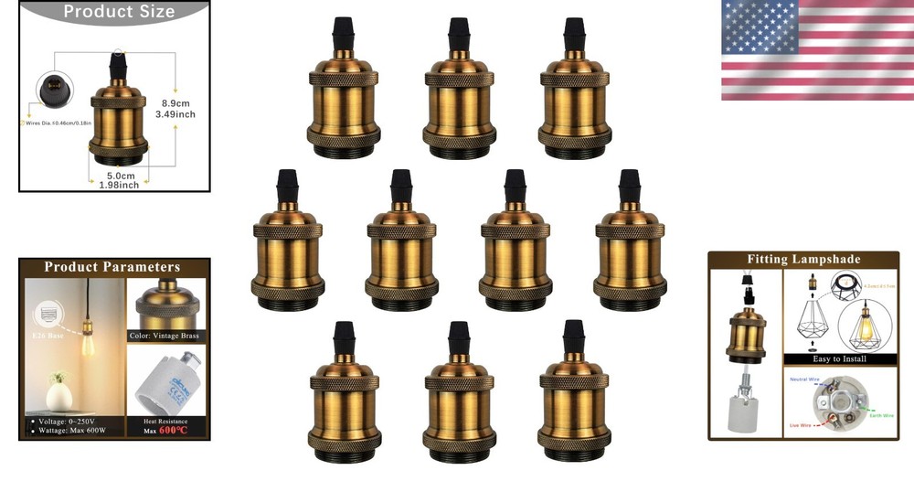 Decorative E26 Edison Pendant Light Socket - Antique Brass, 600℃ Heat Resistant ‹ › ‹ › ‹ › ‹ › ‹ › ‹ › ‹ › ‹ › ‹ › ‹ › Decorative E26 Edison Pendant Light Socket Antique Brass Finish | 600℃ Heat Resistant Transform your living space with the exquisite charm of the Decorative E26 Edison Pendant Light Socket , elegantly crafted to inspire a sense of nostalgia and warmth. This antique-inspired fixture is the perfect choice for your decorative DIY pendant lighting projects, effortlessly enhancing any interior. Features: High-Quality Assurance: CE and RoHS certified for your safety and confidence. Sturdy Design: Tightly secures bulbs, ensuring stability and longevity. Heat-Resistant: Endures temperatures up to an astounding 600℃. Premium Materials: Constructed with an aluminum cover and a ceramic lamp holder for durability. Applications: Ideal for pairing with E26 vintage Edison bulbs, creating a beautiful retro ambiance. Perfect for pendant lighting, it adds a touch of elegance to modern interiors. Enhance the atmosphere with the addition of different lampshades; adjust wire length for unique decorative effects. Installation: Effortlessly elevate your space! Our pendant light socket is designed for hassle-free setup. Simply connect the wires to the positive and negative poles, assemble all components, and enjoy your stunning new lighting. Customer Satisfaction Guaranteed: Your experience matters! We pride ourselves on our prompt and considerate customer service, ensuring your satisfaction every step of the way. Enjoy peace of mind with our 3-month refund policy and a 1-year warranty. Illuminate your home with elegance and style—order your Decorative E26 Edison Pendant Light Socket today and embrace a timeless atmosphere that echoes classic sophistication! Shipping Free & Fast Shipping - We offer free shipping to most of the USA with a normal delivery time of 3-7 days. However, due to the current situation, additional delivery time (up to 3 weeks) may be required for some items. Alternative Carriers - We may use alternative carriers (e.g. USPS, FedEx, UPS, etc.) to ensure your package arrives safely and on time. Due to the use of multiple carriers, we are unable to provide a tracking number automatically. Handling Time - Orders are processed and shipped within 1-2 business days of receiving cleared payment. Shipping Restrictions - Shipping to Alaska, Hawaii, Puerto Rico, Guam, and other US territories may incur shipping charges or delivery restrictions. Please contact us before ordering, or your order can be refunded/cancelled. State Restrictions - There may be restrictions based on your state of purchase. For example, certain items may not be shipped to California due to state regulations. Contact for Tracking Updates - If you require tracking updates or have any concerns about the delivery of your order, please feel free to contact us, and we will be happy to assist you. Return 30-Day Hassle-Free Returns - We want you to be completely satisfied with your purchase. If you are not, you can return the item within 30 days of receiving it for a full refund or exchange. Easy Return Process - To start a return, simply contact us and we will provide you with a prepaid return shipping label and detailed instructions. Restocking Fee - There are no restocking fees for returns. However, the buyer is responsible for return shipping costs if the return is not due to a seller's error. Refund Processing Time - Refunds will be processed within 5 business days of receiving the returned item in its original condition. Payment We accept all major credit cards, PayPal, and Apple Pay for your convenience. Your payment information is secure and encrypted to ensure a safe and seamless transaction. Please complete your payment within 3 days of purchase to avoid any delays in shipping. Feedback Your feedback is extremely important to us. We strive to provide the best products and customer service possible. If you are satisfied with your purchase, please take a moment to leave us a positive review. If you have any concerns or issues with your order, please contact us before leaving negative feedback. We are committed to resolving any problems and ensuring your satisfaction. Contact Us If you have any questions or concerns, please feel free to reach out to our customer support team. You can contact us through the eBay messaging system. We are available Monday to Friday, 9:00 am to 5:00 pm EST, and we will do our best to respond to your inquiry within 24 hours. Buy it now and enjoy a pleasant shopping experience! UPC: Not Set Model: Not Set Item Height: Not Set Item Length: Not Set Item Width: Not Set Unit Quantity: 10 Material: Ceramic,Aluminum Compatible Product: E26 Medium Base Bulbs,Edison Bulbs Department: Unisex Adult Features: Easy Installation,CE Certified,RoHS Certified,Heat Resistant,Durable,Sturdy,High-quality,Heat-resistant,Material: Aluminum,Material: Ceramic Theme: Not Set Compatible Brand: Not Set Compatible Model: Not Set Labels & Certifications: Not Set Type: Lamp Socket Brand: Unbranded Number in Pack: 10 Color: Vintage Brass Bulb Shape Code: E26 Connectors: Screw Style: Vintage Lighting Technology: Incandescent Time Period Manufactured: Not Set MPN: Not Set Manufacturer: Not Set Item Diameter: Standard Country/Region of Manufacture: Not Set Year Manufactured: Not Set Power: Not Set Amperage: Not Set Power Source: Corded Voltage: Not Set Current Type: Not Set Output Voltage: Not Set Item Weight: 2.29 lb IP Rating: IP20 Manufacturer Warranty: Not Set Unit Type: lb Vintage: Not Set Original/Licensed Reproduction: Not Set Antique: Not Set Personalized: Not Set