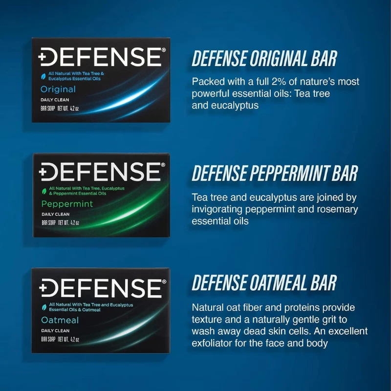 Defense Soap - Natural Tea Tree & Eucalyptus Oil Defense Soap - 100% Natural Tea Tree & Eucalyptus Oil Scent: Classic Age Range: Adult Product Features Clinically Proven Ingredients: Infused with natural tea tree and eucalyptus oil for deep cleansing and skin protection. Perfect for Athletes: Effectively removes dirt, grime, gym crud, sweat, and allergens. Premium Quality Wash: Restores the skin’s natural barrier while controlling excess oil and dead skin cells. Hypoallergenic & Safe: Gentle eucalyptus scent suitable for sensitive skin, triple-milled for consistency and longevity. All-Natural Formula: Free from fragrances, dyes, petrochemicals, triclosan, alcohol, and sodium lauryl sulfate. Technical Specifications Feature Details Item Weight 4 Ounces Dimensions (L x W x H) 3.75 x 1.5 x 2.25 inches Scent Classic Age Range Adult Product Images Return Policy This item can be returned in its original condition for a full refund or replacement within 30 days of receipt. Visit Quick Pick for more amazing deals!