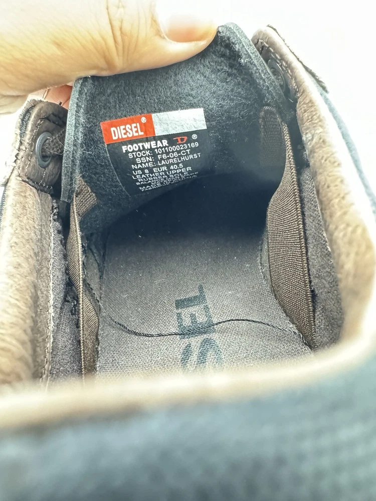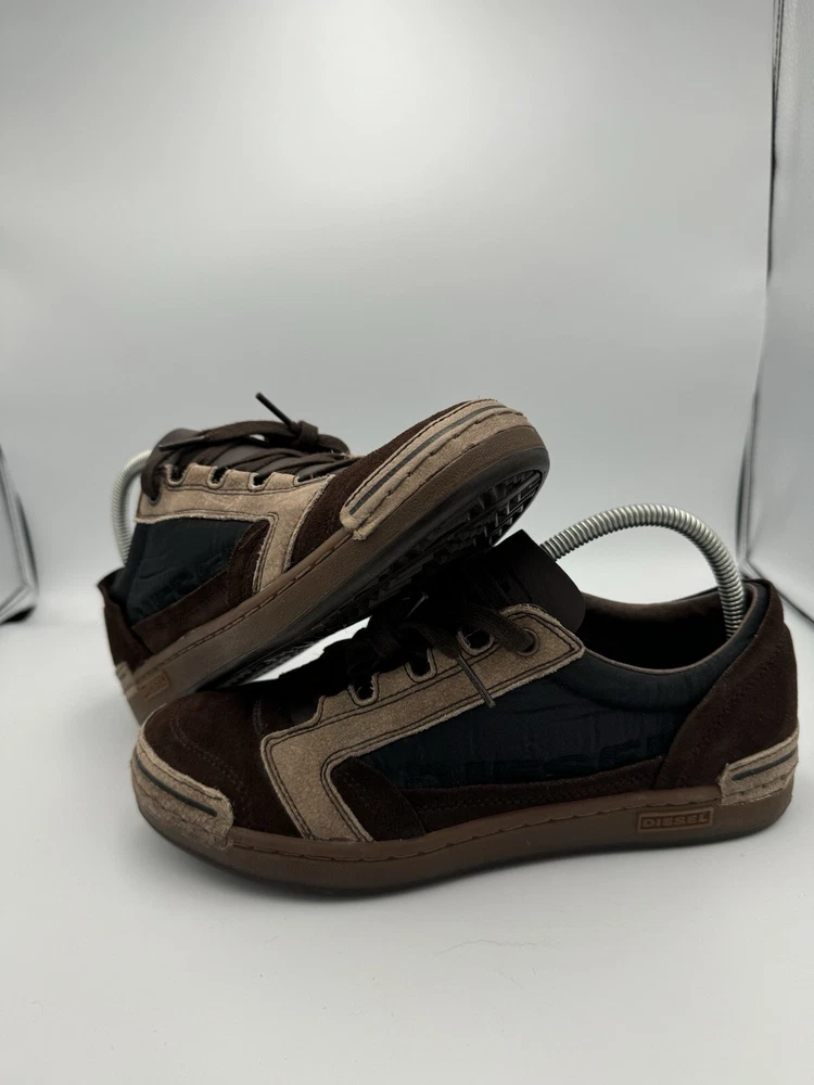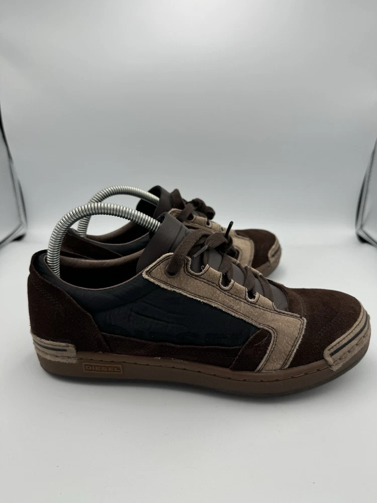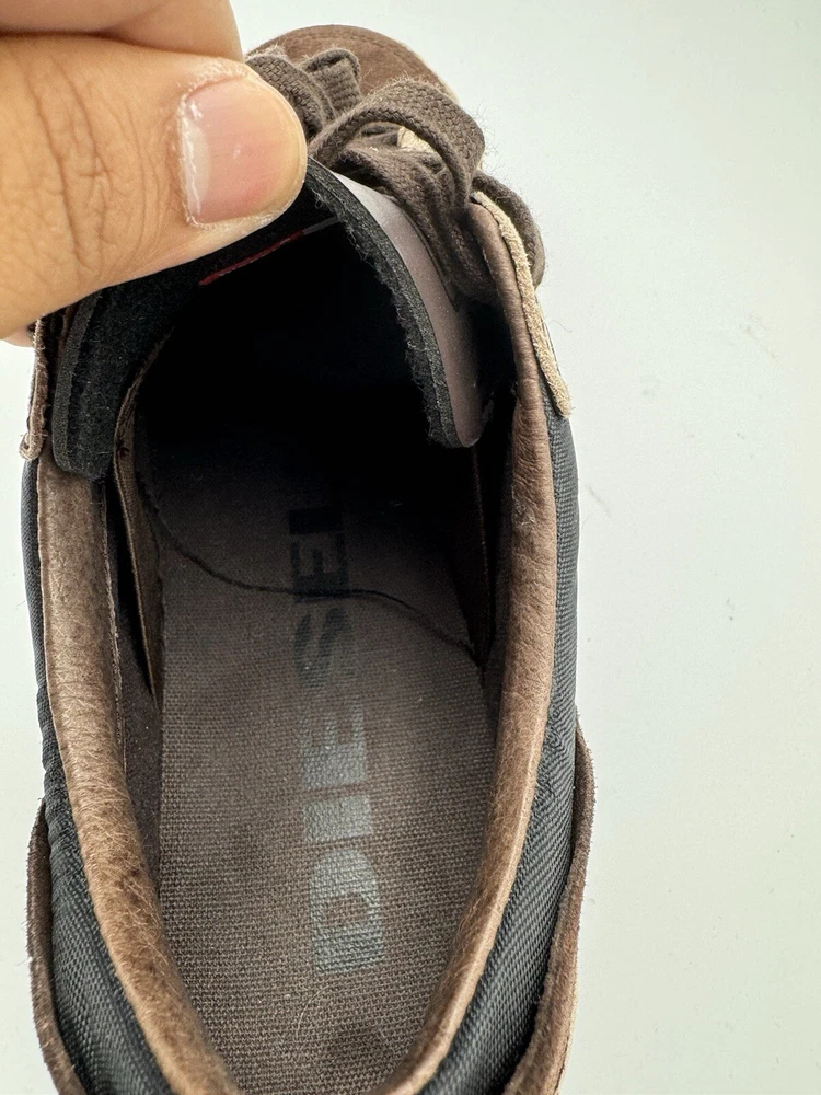 Elevate your style and performance with these Deisel sneakers for women in size 8. Perfect for boxing or any other athletic activity, these brown sneakers are designed to provide comfort and support. With the iconic Deisel branding, these shoes are a must-have for any sneakerhead. Whether you're hitting the gym or running errands, these sneakers are versatile enough to match any outfit. Don't miss out on the opportunity to add these high-performance shoes to your collection. IF YOU GUYS HAVE ANY QUESTION ABOUT THE ITEM FEEL FREE TO SEND ME A MESSAGE SOLD AS IS PLEASE SEE ALL THE PICTURES BEFORE BUYING TO SEE CONDITION WHAT YOU SEE IS WHAT YOU GET DO NOT HESITATE TO SEND A REASONABLE OFFER ORDERS WILL BE SHIPPED OUT IN A WATER PROOF POLY MAILER THANK YOU FOR YOUR TIME HAVE A GOOD ONE