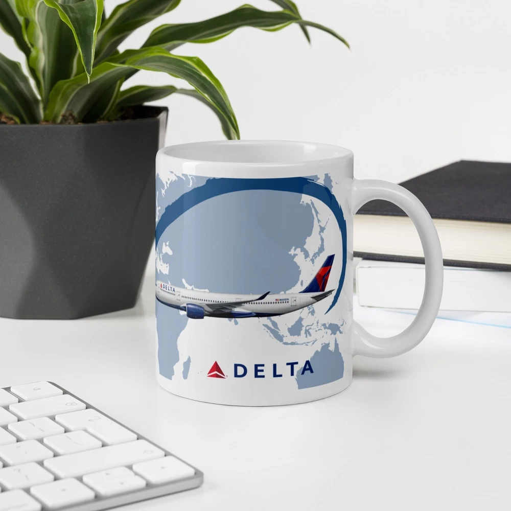 Bring the skies to your morning routine with this 11 oz ceramic mug featuring the iconic Delta Airbus A350-900H . Inspired by the style of vintage trade cards, this mug captures the elegance of modern aviation in a timeless design. Perfect for any aviation enthusiast, Delta Airlines fan, or Airbus admirer , it’s a stylish way to enjoy your favorite hot coffee, tea, or any beverage. The high-quality print highlights the famous aircraft in crisp detail. To keep the image looking sharp for years, hand wash is recommended . This mug makes a thoughtful gift for Christmas, birthdays, or any special occasion —or simply a treat for yourself to show your aviation passion at home, in the office, or at work. With fast shipping , you won’t have to wait long to enjoy your new favorite mug. Take off every day with a sip of inspiration! Colors may vary slightly due to computer monitor settings. Order Production: Ships Same or Next Day Standard Shipping: 3-5 Business Days After Production Time Have any questions? Do you want to order more tumblers, just add them to the cart, and them check out. Do not hesitate and contact me :)