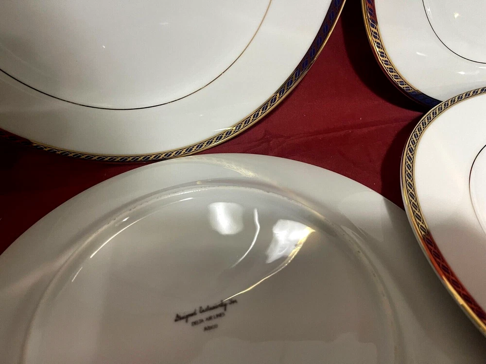 Delta Airlines ABCO Set Of 4 Blue & Gold Border Dinner Plates 9 3/4"