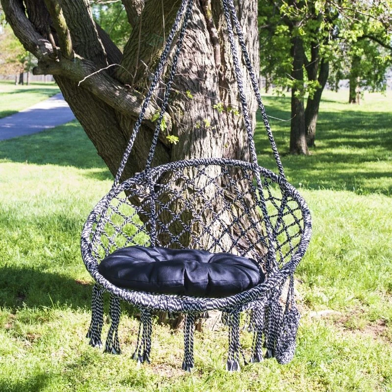 This bright and beautifully handwoven cotton-polyester blend Cream and Black Equip Deluxe Macrame Outdoor Hanging chair is perfect for reading and relaxing on long summer days. The flowing fringe gives it a bohemian style that is eye-catching and comfortable. This Macrame chair also features an ultra-plush round pillow and detachable phone pocket. This hanging swing chair is lightweight at only 8.4 lb. making it portable and easy to take with you to the park or anywhere you want to relax for a while. The included hanging kit has a tree strap and carabineer that hooks to the metal rings on the hanging chair. This trendy Macrame Chair will become your favorite reading nook, meditation oasis, or a place to soak up the sun. Cream and Black Outdoor Deluxe Macrame Hanging Chair Product Weight: 8.4 lb. Weight Capacity: 250 lb. Comfortable handwoven cotton-polyester blend macramé for added comfort Includes Hanging Kit with Strap and Carabiners for easy setup Open Size: 47" H x 24" W Includes ultra-plush round pillow, and detachable cell phone pocket Supportive frame for hanging out anywhere Payment Delivery details Returns Contact Us Feedback Payment 1.We accept PayPal only. 2.Payment must be received within 7 business days of auction closing. 3.We ship to your eBay or Paypal address. Please make sure your eBay and Paypal address is correct before you pay. Delivery details We try our best to ship out same day for payment cleared before 5.00 PM (Pacific Time) , Order placed on weekend or holiday will be shipped on Monday or next working day. Below is the approximate delivery time to different countries (just estimated, not guaranteed): 7-25 working days to buyer in USA. Returns 1.We offer 30 days return policy. Please contact us within 30 days from the date you receive your order if you have any issues with the product and want to return. 2.All items must be returned in the original packaging and you must provide us with the tracking shipping number, specific reason for the return, and your eBay ID. 3.We will refund you FULL WINNING BID AMOUNT, upon receipt of the item in its original condition and packaging with all components and accessories included, AFTER BOTH Buyer and Seller cancel the eBay transaction. Or, you can choose to get a replacement. Contact Us All communication is done through EBAY MESSAGES ONLY. If any question, please feel free to contact us via "Ask seller a question" or "Contact Seller",We try our best to reply to your emails as soon as possible, due to high volume of daily incoming emails and time zone difference, we may not be able to reply your emails immediately. Please allow 1-2 business days for us to response. Feedback Feedbacks: When you receive the item and satisfied with the product, please leave us positive feedback. If for any reason you are not satisfied with your purchase from us, please contact so we can get to work and resolve this issue for you. Please don't leave neutral or negative feedback without giving us an opportunity to try and make it right. Our goal is to ensure a happy shopping experience with us. Your Positive feedback is very much appreciated!