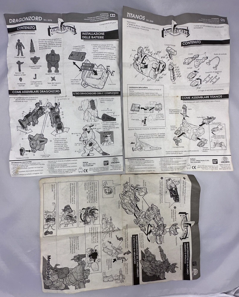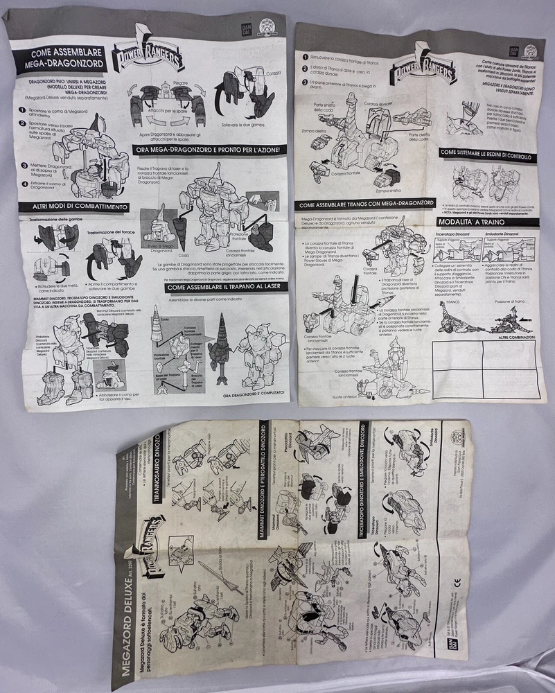 Deluxe Ultrazord Megazord Dragonzord Titanos Power Rangers Bandai Super Sentai The description of this item has been automatically translated. If you have any questions, please feel free to contact us. BANDAI POWER RANGERS SUPER SENTAI ULTRAZORD DELUXE MEGAZORD DRAGONZORD TITANOS Lot of 3 used loose robots. Yellowed instructions present with some folds and tears. No original packaging. Signs of wear and paint loss. Some stickers missing, others damaged. Only the accessories visible in the photo are present (certainly missing: figure of the green ranger, the tip of the dragonzord's tail, a laser on the megazord's back). Good overall condition. Working dragonzord chest light mechanism. Working titanos movement mechanism. ROBOTS ARE NOT SOLD SEPARATELY. I join to form the Ultrazord robot Deluxe version (DX). Item for adult collectors. Please refer to pictures, ask for further information. For international shipments and outside Italy, before purchasing, please contact us first in order to establish the exact amount. Thank you for choosing us. If you have not received your item within the expected time frame, please contact us before opening a dispute. We will be happy to assist you and find a solution that is satisfactory for both of you. We kindly ask you to wait for our response before proceeding with any complaints. Your satisfaction is our priority. Dear customer, please note that each item available in our store is equipped with a unique invisible identification system. This allows us to verify the authenticity of the items in case of return. Any discrepancy between the item sold and the returned item will be promptly detected and reported. We thank you for your attention and cooperation. Battery-powered items are supplied without a battery. BANDAI POWER RANGERS SUPER SENTAI ULTRAZORD DELUXE MEGAZORD DRAGONZORD TITANOS Lot of 3 used loose robots. Comes with yellowed instructions with some creases and tears. No original packaging. Signs of wear and paint loss. Some stickers missing, others damaged. Comes only with the accessories visible in photo (surely missing: green ranger figure, dragonzord tail tip, megazord back laser). Good overall condition. Working dragonzord chest light mechanism. Titanos movement mechanism working. THE ROBOTS ARE NOT SOLD SEPARATELY. they combine to form the Deluxe version ultrazord robot (DX). Item for adult collectors. Please refer to pictures, ask for further information. For international and out of Italy shipment please contact us before to buy in order to define exactly the costs. Combined shipping for the purchase of several items. Tracked shipping. Thank you for choosing us. Please note that delivery times may vary depending on shipping conditions. If you have not received your item by the deadline, please contact us before opening a dispute. We will be happy to assist you and find a mutually satisfactory solution. We kindly ask you to wait for our reply before proceeding with any complaints. Your satisfaction is our priority. Dear customer, please note that every item available in our shop is tagged with an exclusive invisible identification system. This allows us to verify the authenticity of the items in the event of a return. Any discrepancies between the sold item and the returned item will be promptly detected and reported. We thank you for your attention and cooperation. Battery-powered devices are supplied without batteries. If payment is not made within 4 days of purchase, the item will automatically be relisted and the sale will be canceled. If payment is not made within 4 days since purchase, the item will be automatically relisted for sale and the transaction will be canceled. Lot of 3 used loose robots. Yellowed instructions present with some folds and tears. No original packaging. Signs of wear and paint loss. Some stickers missing, others damaged. Only the accessories visible in the photo are present (certainly missing: figure of the green ranger, the tip of the dragonzord's tail, a laser on the megazord's back). Good overall condition. Working dragonzord chest light mechanism. Working titanos movement mechanism. ROBOTS ARE NOT SOLD SEPARATELY. I join to form the Ultrazord robot Deluxe version (DX). Lot of 3 used loose robots. Comes with yellowed instructions with some creases and tears. No original packaging. Signs of wear and paint loss. Some stickers missing, others damaged. Comes only with the accessories visible in photo (surely missing: green ranger fi Marca Bandai MPN 0 EAN Non applicabile