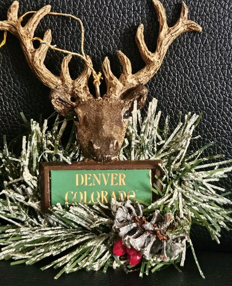 Denver Colorado Reindeer with Wreath Deer Head Antlers Christmas Ornament