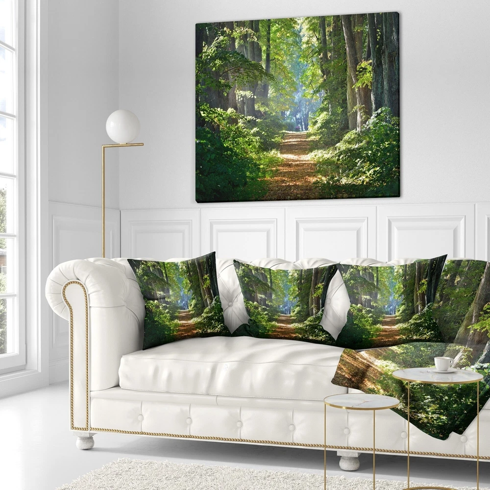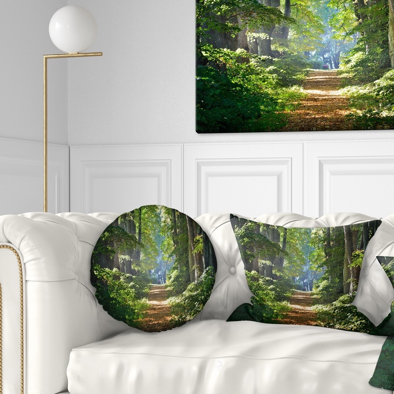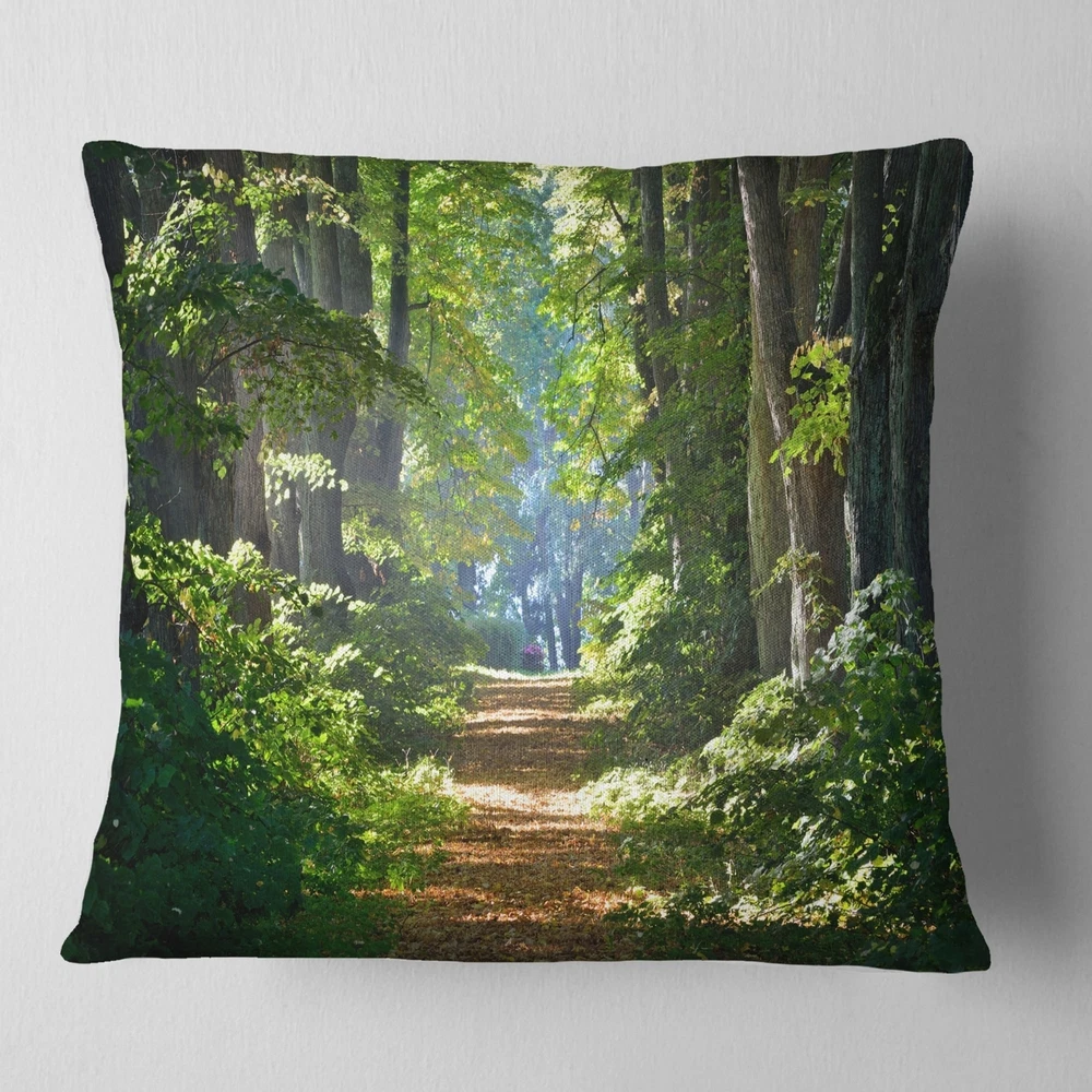 Decorative Throw Pillows for Couch Bed Sofa with Zip CoversAn easy, fun way to add a pop of color or bring new life to any room in your home or office is with these beautiful Landscape throw pillows. Dress up your bed, sofa or lounger with this decorative design art pillows. Perfect as Traditional bedroom décor, lounge décor Cottage living room décor. It adds a fun accent to any room. Throw pillows really do work wonders: they can transform any room from uninviting discomfort to warm and welcoming. And they really do go almost anywhere - arrange a couple on the couch or sofa, place one in your overstuffed chair for extra coziness, toss a couple on the bed and prop yourself up for a great read.These Landscapes pillow is printed using High Color Density Italian inks to create a vibrantly Free Shipping Over $49.99* Details Designart 'Bright Green Forest in Morning' Landscape Photography Throw Pillow Product Description: Decorative Throw Pillows for Couch Bed Sofa with Zip Covers An easy, fun way to add a pop of color or bring new life to any room in your home or office is with these beautiful Landscape throw pillows. Dress up your bed, sofa or lounger with this decorative design art pillows. Perfect as Traditional bedroom décor, lounge décor Cottage living room décor. It adds a fun accent to any room. Throw pillows really do work wondersthey can transform any room from uninviting discomfort to warm and welcoming. And they really do go almost anywhere - arrange a couple on the couch or sofa, place one in your overstuffed chair for extra coziness, toss a couple on the bed and prop yourself up for a great read. These Landscapes pillow is printed using High Color Density Italian inks to create a vibrantly colored, sharp artwork. Features: Perfect accent to any furniture piece Basic shapes with a modern graphic design twist Printed on ultra smooth and 100% light weight polyester Cushion filled with 100% polyester fill Wrinkle resistant fabric Zip Closure so you can remove the pillow from its' cover Down-like comfort - Odorless 100% Hypoallergenic Machine Wash Cold Separately, Gently Cycle Only, No bleach, hang to dry Print on Demand with High Density Italian Ink Available in Several sizes Attribute :Traditional, Cottage, Fine Art Giclee Subject Landscapes, Country Charm, Photography