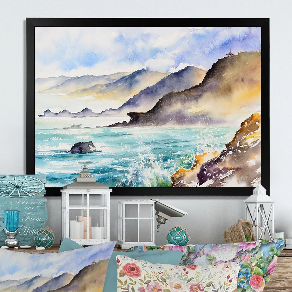 This beautiful Huge Ocean Waves In Coastal Bay Framed wall Art is printed using the highest quality fade resistant ink on canvas. Every one of our Framed Giclee Prints is printed on premium quality canvas, using the finest quality inks which will not fade over time and then mounted and framed on a 1.5 inch wide frame.This framed art print is available in many different color frames. All of our framed art prints are carefully packaged with corner protectors, fragile labeling, and sturdy boxes to ensure a safe delivery. Every framed art arrives ready to hang on the wall, with the hanging kit included.Features:- Style : Lake House- Subject : Cottage, Landscape & Nature, Ocean- Color : Blue- Premium quality cotton canvas mounted.- Available in several frame colors. - Arrives with instructions Free Shipping Over $49.99* Details Designart "Huge Ocean Waves In Coastal Bay" Lake House Framed Wall Decor Product Description: This beautiful Huge Ocean Waves In Coastal Bay Framed wall Art is printed using the highest quality fade resistant ink on canvas. Every one of our Framed Giclee Prints is printed on premium quality canvas, using the finest quality inks which will not fade over time and then mounted and framed on a 1.5 inch wide frame. This framed art print is available in many different color frames. All of our framed art prints are carefully packaged with corner protectors, fragile labeling, and sturdy boxes to ensure a safe delivery. Every framed art arrives ready to hang on the wall, with the hanging kit included. Features: - Style Lake House - Subject Cottage, Landscape & Nature, Ocean - Color Blue - Premium quality cotton canvas mounted. - Available in several frame colors. - Arrives with instructions and hanging kit