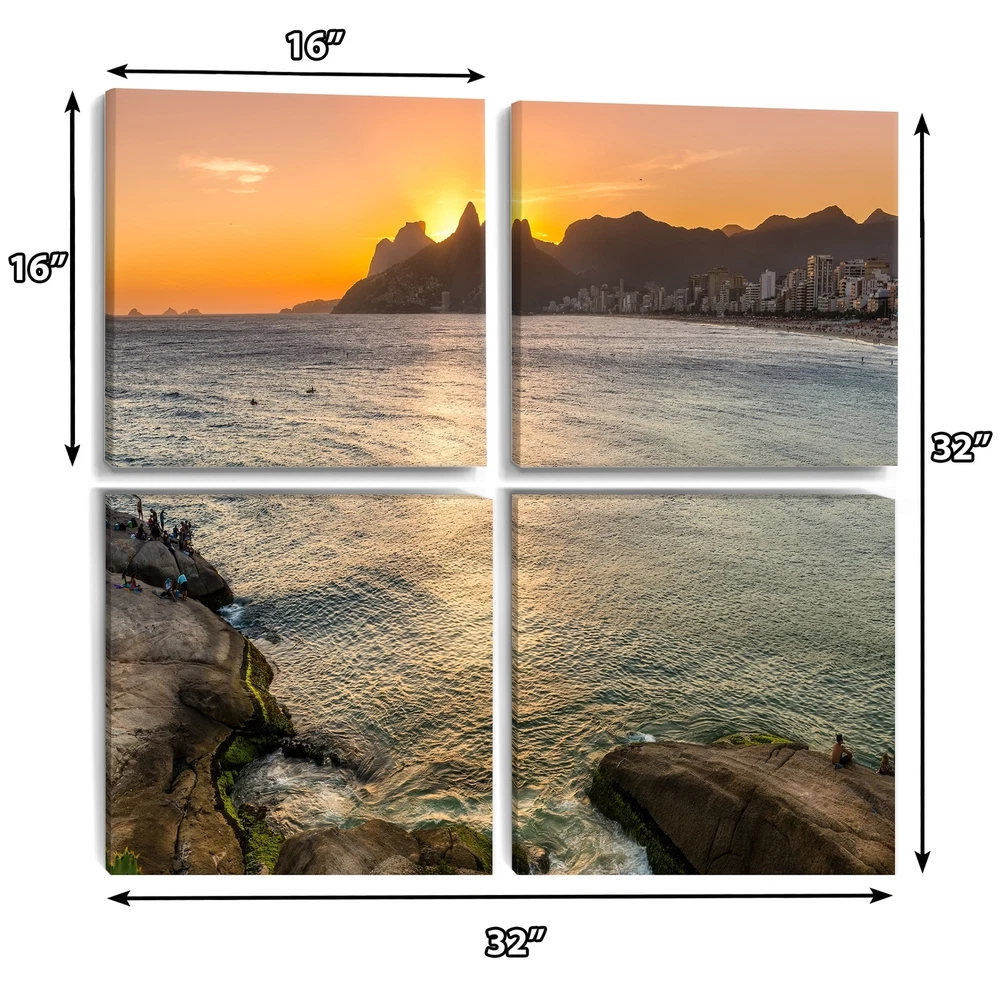 This beautiful Ipanema in Rio de Janeiro Sunset Multipanels canvas art is printed using the highest quality fade-resistant ink on canvas. Every one of our fine art giclee canvas prints is printed on premium quality cotton canvas, using the finest quality inks which will not fade over time. Each giclee print is stretched tightly over a 1-inch wood subframe ensuring the canvas is taught and does not buckle. This canvas art print is gallery-wrapped (the design continues on the sides), giving it a real art gallery feel. All of our canvas prints are carefully packaged with plastic protection, fragile labeling, and sturdy boxes to ensure safe delivery. Every canvas print arrives ready to hang on the wall, with the hanging kits included.- Style : Nautical & Coastal- Subject : Beach- Color : Free Shipping Over $49.99* Details Designart "Ipanema in Rio de Janeiro Sunset" Sea & Shore Canvas Wall Art Print Product Description: This beautiful Ipanema in Rio de Janeiro Sunset Multipanels canvas art is printed using the highest quality fade-resistant ink on canvas. Every one of our fine art giclee canvas prints is printed on premium quality cotton canvas, using the finest quality inks which will not fade over time. Each giclee print is stretched tightly over a 1-inch wood subframe ensuring the canvas is taught and does not buckle. This canvas art print is gallery-wrapped (the design continues on the sides), giving it a real art gallery feel. All of our canvas prints are carefully packaged with plastic protection, fragile labeling, and sturdy boxes to ensure safe delivery. Every canvas print arrives ready to hang on the wall, with the hanging kits included. - Style Nautical & Coastal - Subject Beach - Color Multi-Color - This canvas giclee print is gallery-wrapped (the design continues on the sides) , giving it a real art gallery feel. - Premium quality cotton canvas. - Arrives ready to hang on the wall - Easy to Hang