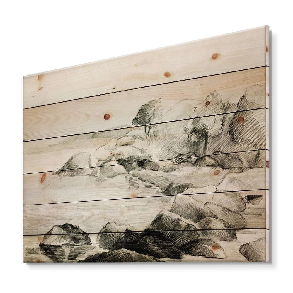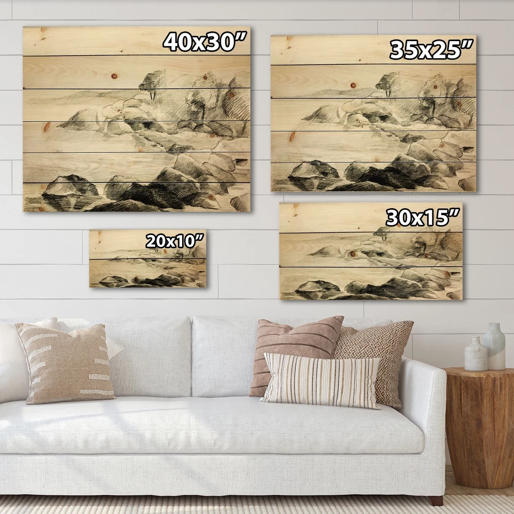 Alas, a modern take on wood wall art. Once typically a wall art piece found only in rustic or farmhouse style decor settings, this Landscapes wood wall art will easily fit into even the most contemporary of designs.Using the highest quality 6 Color Canon UV Ink, this Nautical & Coastal wood wall art incorporates several aspects of fine design into one stunning piece. With its slightly visible wood grain appearing through the colors and sleekly finished edges, it is a wonderful choice for any room in your home or office, being it a traditional or modern space. As each piece of wood has natural grain differences from the next, each of these wood wall arts is a truly unique addition to your space.Each Wood wall art is 100% handmade in Canada on Natural pine wood, using the highest quality ink Free Shipping Over $49.99* Details Designart 'Monochrome Lake Shore' Nautical & Coastal Print on Natural Pine Wood Product Description: Alas, a modern take on wood wall art. Once typically a wall art piece found only in rustic or farmhouse style decor settings, this Landscapes wood wall art will easily fit into even the most contemporary of designs. Using the highest quality 6 Color Canon UV Ink, this Nautical & Coastal wood wall art incorporates several aspects of fine design into one stunning piece. With its slightly visible wood grain appearing through the colors and sleekly finished edges, it is a wonderful choice for any room in your home or office, being it a traditional or modern space. As each piece of wood has natural grain differences from the next, each of these wood wall arts is a truly unique addition to your space. Each Wood wall art is 100% handmade in Canada on Natural pine wood, using the highest quality ink which will not fade over time. Available in Differents sizes - OrientationHorizontal - SubjectLandscapes TypeWood Wall Art, Fine Art, Wood Fine Art, Print on Plaque - Arrives ready to hang on the wall with hanging kit included - MaterialMade with 100% natural pine wood - StyleNautical & Coastal - Number of Pieces1 - ColorGrey