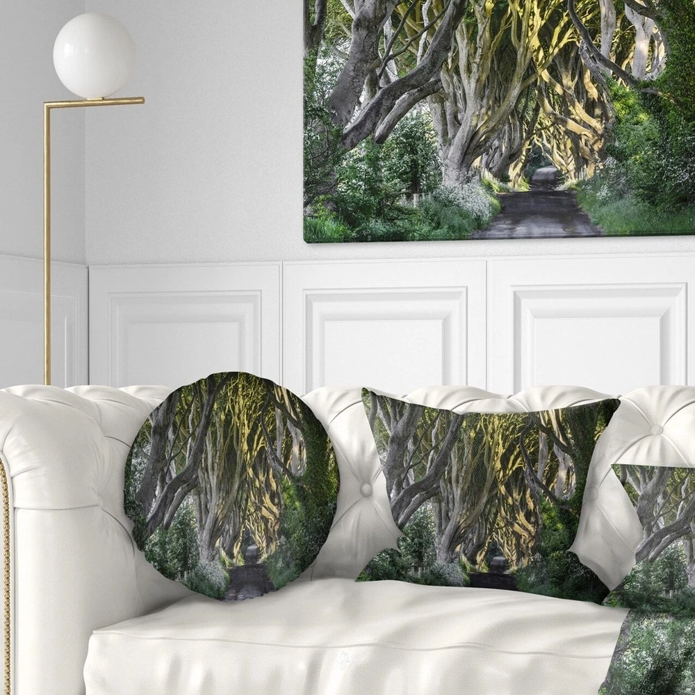 Decorative Throw Pillows for Couch Bed Sofa with Zip CoversAn easy, fun way to add a pop of color or bring new life to any room in your home or office is with these beautiful Landscape throw pillows. Dress up your bed, sofa or lounger with this decorative design art pillows. Perfect as Farmhouse bedroom décor, lounge décor Traditional living room décor. It adds a fun accent to any room. Throw pillows really do work wonders: they can transform any room from uninviting discomfort to warm and welcoming. And they really do go almost anywhere - arrange a couple on the couch or sofa, place one in your overstuffed chair for extra coziness, toss a couple on the bed and prop yourself up for a great read.These Landscapes pillow is printed using High Color Density Italian inks to create a vibrantly Free Shipping Over $49.99* Details Designart 'The Dark Hedges Ireland Landscape' Photography Throw Pillow Product Description: Decorative Throw Pillows for Couch Bed Sofa with Zip Covers An easy, fun way to add a pop of color or bring new life to any room in your home or office is with these beautiful Landscape throw pillows. Dress up your bed, sofa or lounger with this decorative design art pillows. Perfect as Farmhouse bedroom décor, lounge décor Traditional living room décor. It adds a fun accent to any room. Throw pillows really do work wondersthey can transform any room from uninviting discomfort to warm and welcoming. And they really do go almost anywhere - arrange a couple on the couch or sofa, place one in your overstuffed chair for extra coziness, toss a couple on the bed and prop yourself up for a great read. These Landscapes pillow is printed using High Color Density Italian inks to create a vibrantly colored, sharp artwork. Features: Perfect accent to any furniture piece Basic shapes with a modern graphic design twist Printed on ultra smooth and 100% light weight polyester Cushion filled with 100% polyester fill Wrinkle resistant fabric Zip Closure so you can remove the pillow from its' cover Down-like comfort - Odorless 100% Hypoallergenic Machine Wash Cold Separately, Gently Cycle Only, No bleach, hang to dry Print on Demand with High Density Italian Ink Available in Several sizes Attribute :Farmhouse, Traditional, Fine Art Giclee Subject Landscapes, Country Charrm, photography