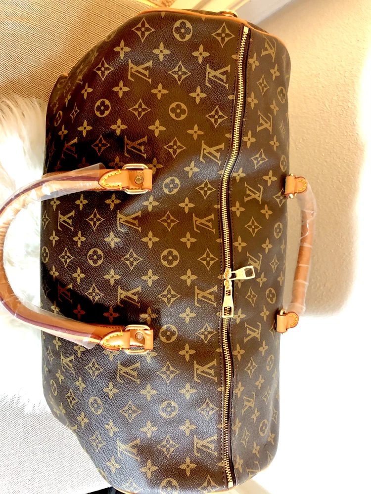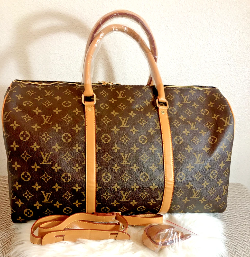 This designer bag is the perfect accessory for any travel occasion. With a spacious interior measuring 10 inches in width, 12 inches in height, and 19.5 inches in depth, it's ideal for storing all your essentials. The bag features a crossbody strap made of faux leather in a tan color, making it easy to carry around. The exterior is made of high-quality faux leather in a rich brown color, giving it a stylish and sophisticated look. The bag is perfect for both casual and travel occasions, and its unisex design makes it suitable for anyone. With a designer theme and a large size, this bag is sure to make a statement wherever you go.