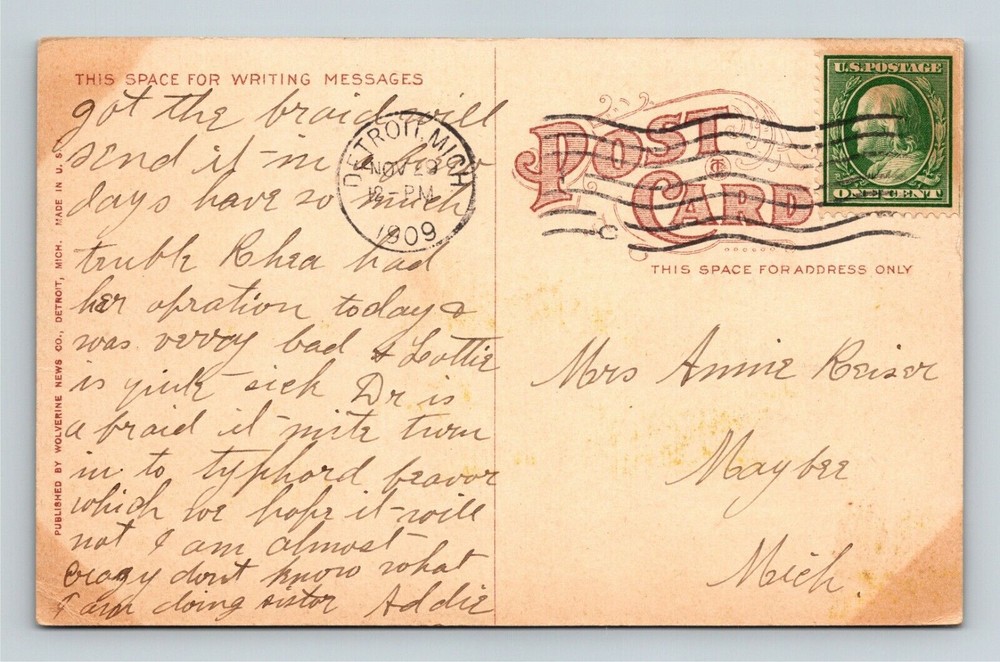Continent: North America Original/Licensed Reprint: Original Country: See Detailed Scan Theme: Cities & Towns Type: Printed (Lithograph) Country/Region of Manufacture: Unknown City: See Detailed Scan Postage Condition: Posted Subject: See Detailed Scan Era: See Detailed Scan Unit of Sale: Single Unit Region: See Detailed Scan Circulated: Yes City/Region: Detroit